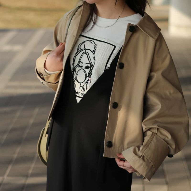 スッキリとした丈感に、ややドルマン袖が女性らしい印象に魅せてくれます。
