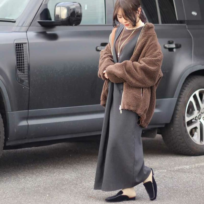 カジュアル見えするボア面と、程よく光沢のあるサテン面で表情の異なる着方を楽しんでいただけます。