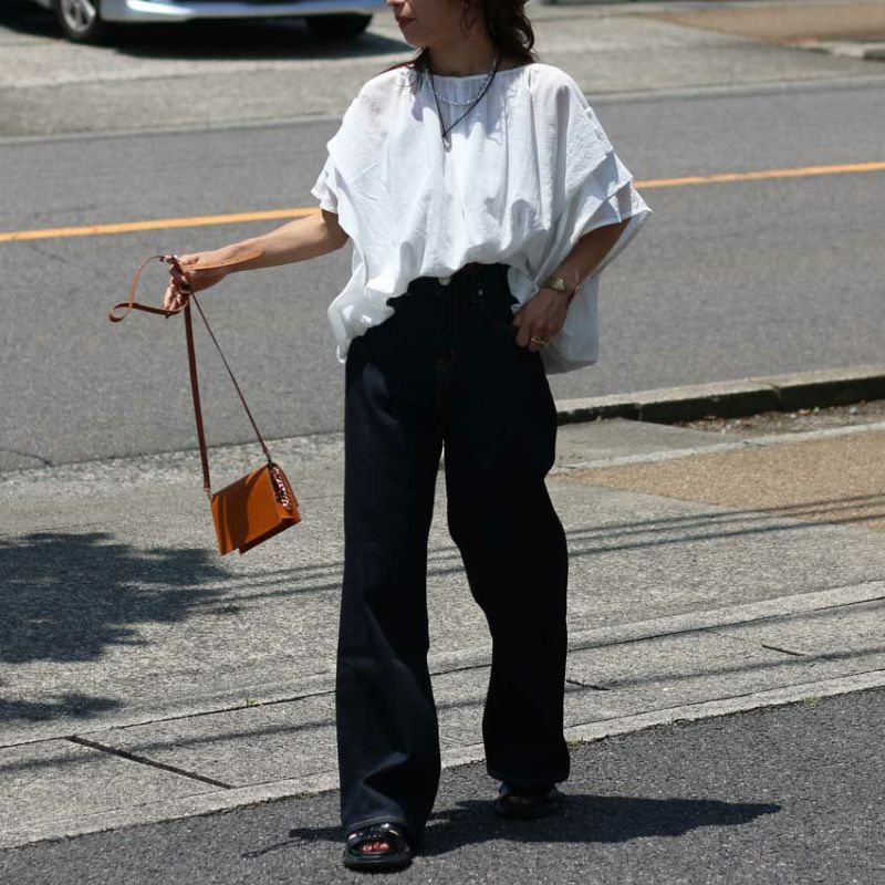 ワイドパンツやスカート、デニム何でも合わせられる万能ブラウスです。