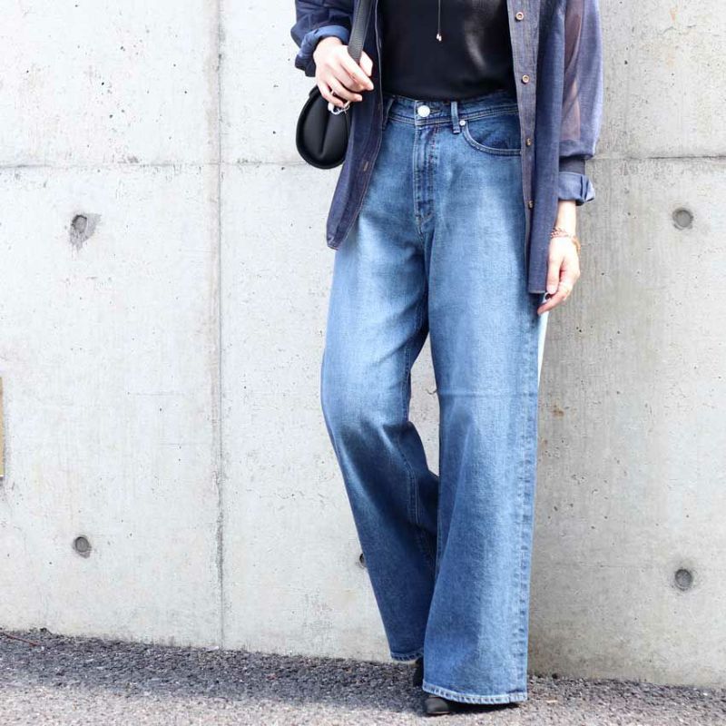 膝幅と裾幅を広くとり、ヒップから裾まで真っすぐに落ちる美しいシルエットが特徴です。