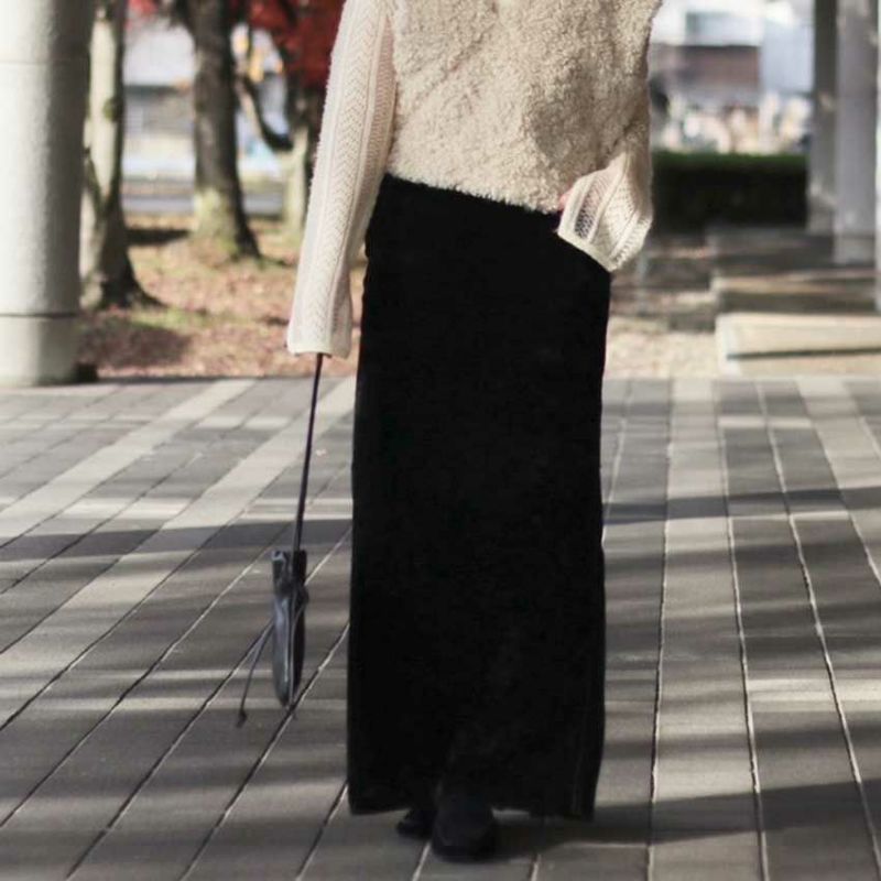 上品な光沢が美しいベルベット素材を贅沢に使用した、大人の雰囲気漂うストレートスカート。