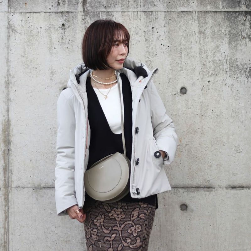 保温性の高いハイネック、ニットリブのインナーカフス仕様。