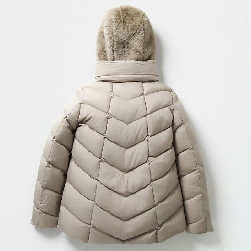 90%ダウン・10%フェザーの混率でふんわり軽く、マイナス10℃まで対応しているので、寒さ厳しい冬も快適にお過ごし頂けます。