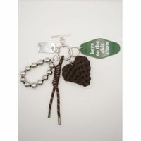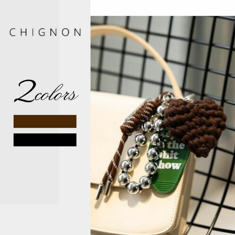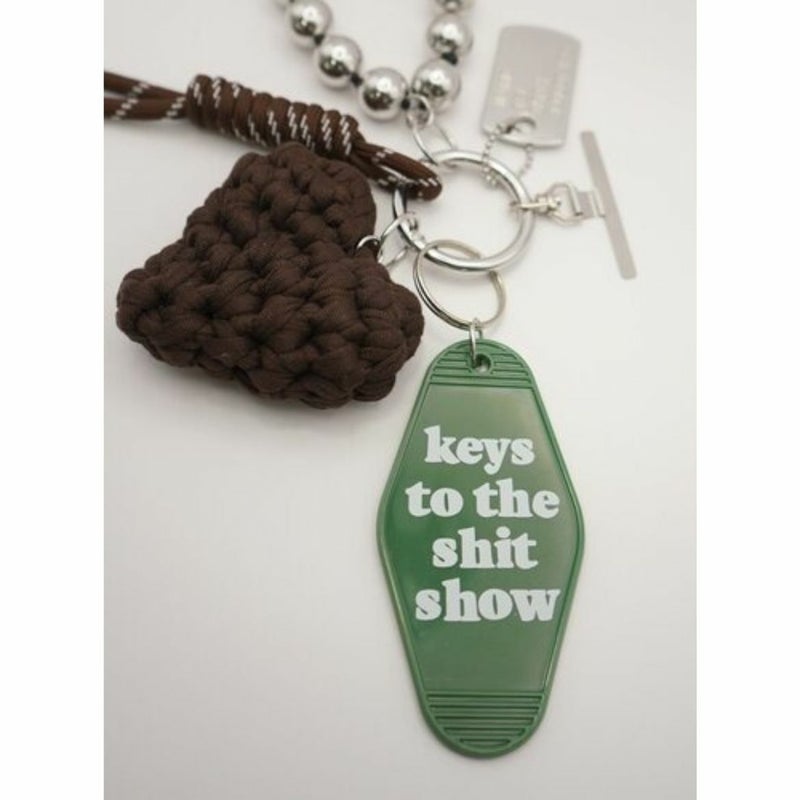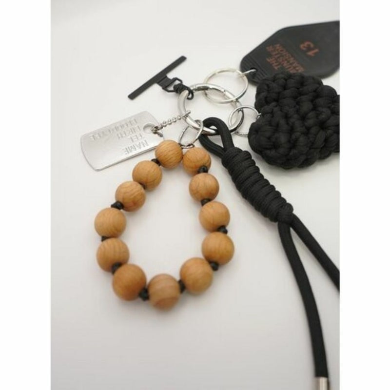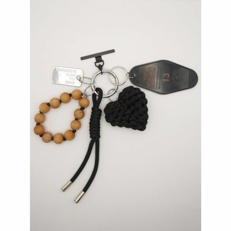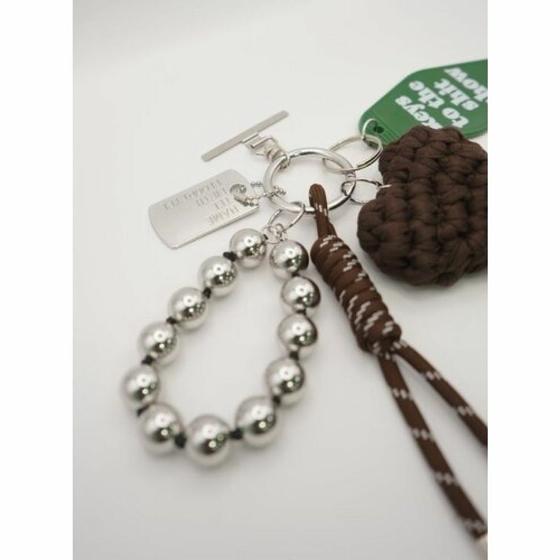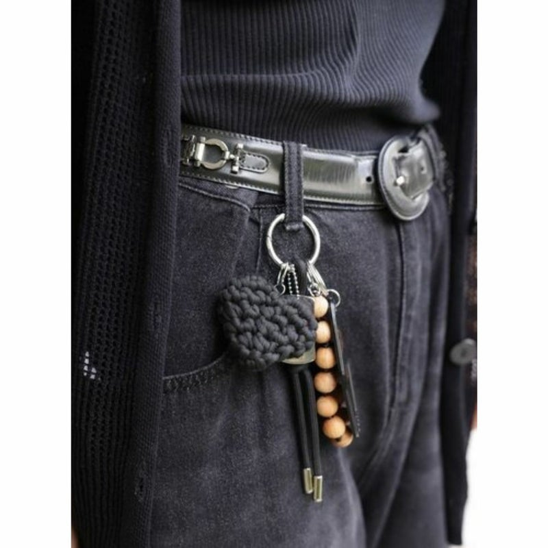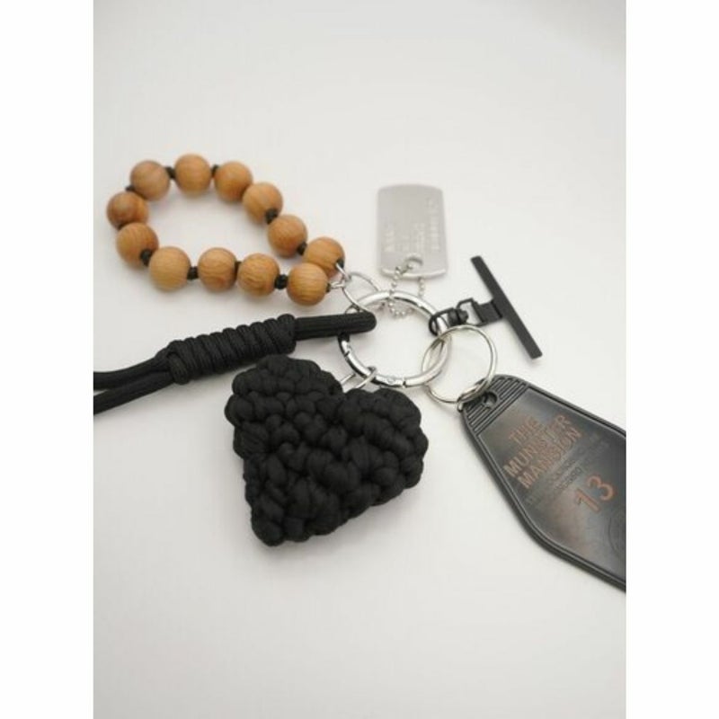 存在感のある太めコード、手編みハート、ドッグタグ、モーテルキー風キーホルダー、それぞれのパーツはすべて取り外し可能なので、その日の気分やシーンに合わせてカスタムして自由にアレンジができます。