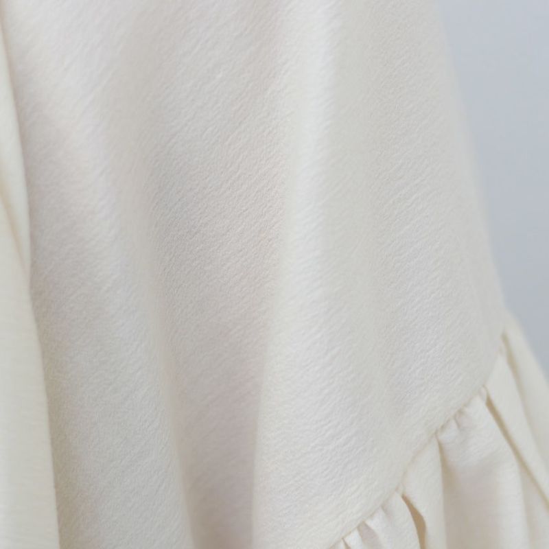 動くたびにふんわり揺れるシルエットが華やかで、1枚で主役級の存在感を放ちます。