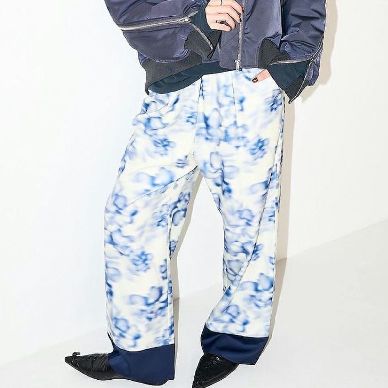 シルエットは定番のパターンを採用し、きちんと感もありつつもウエストはゴム仕様でイージーな着心地を実現しました。