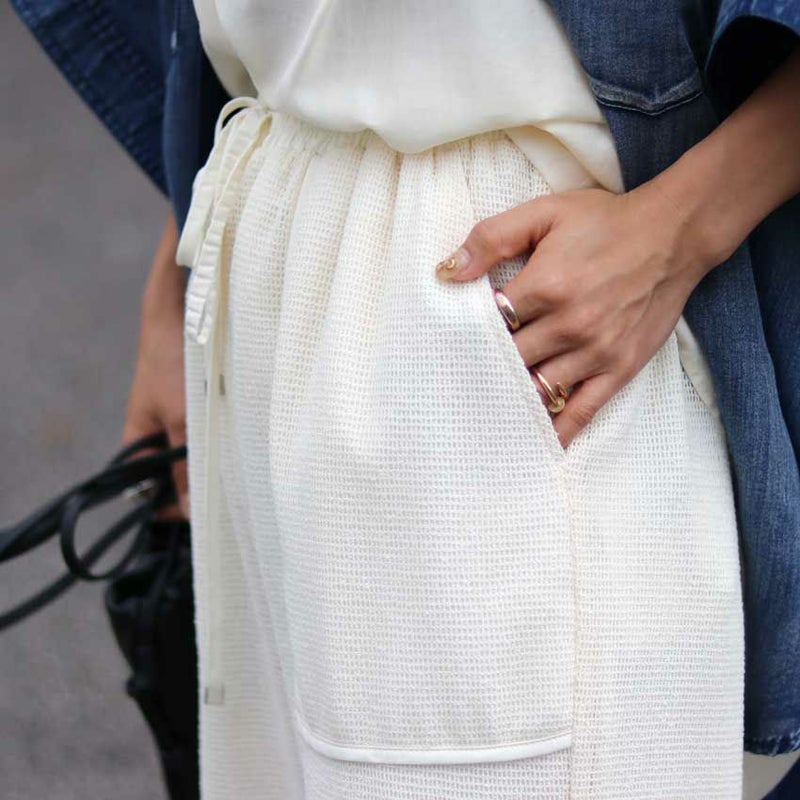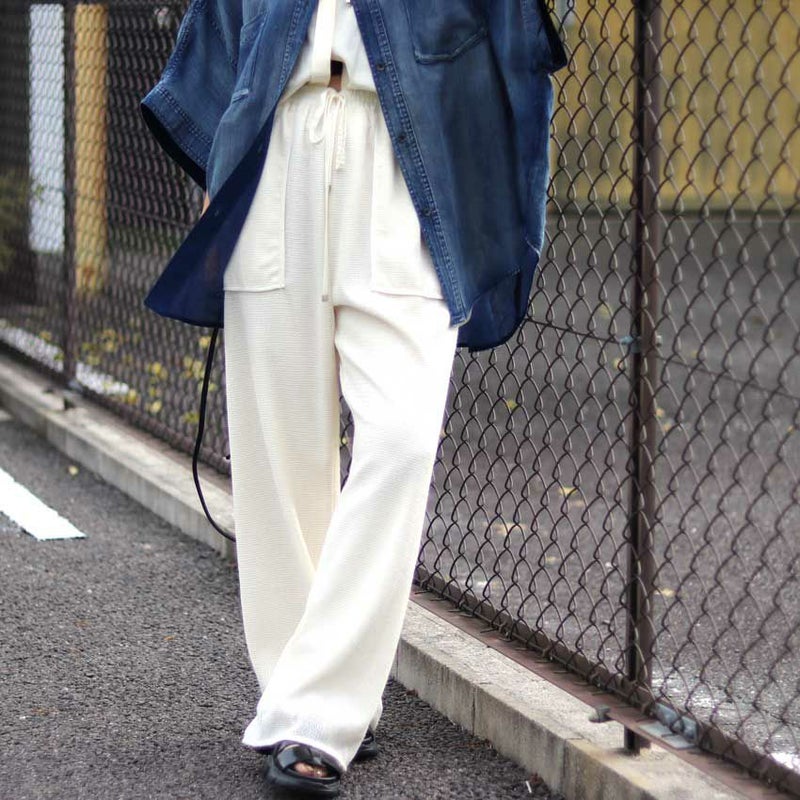 夏のTシャツやシンプルなアイテムとも相性が良いデザインパンツになっています。