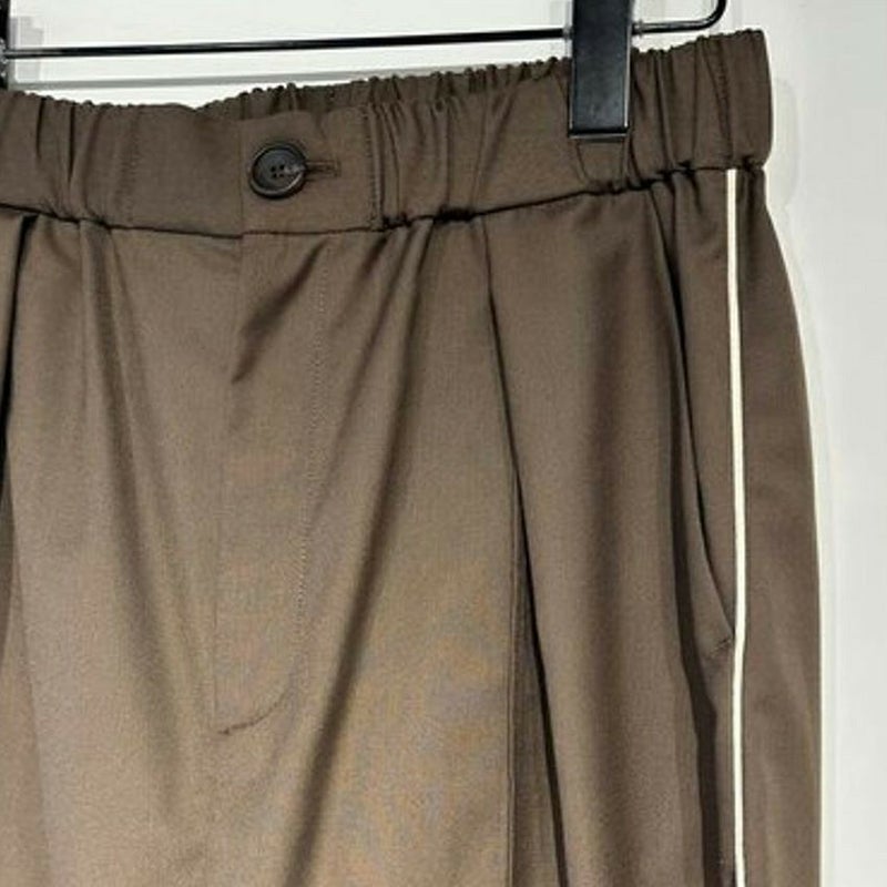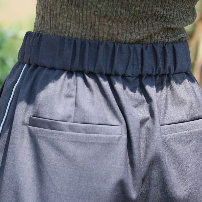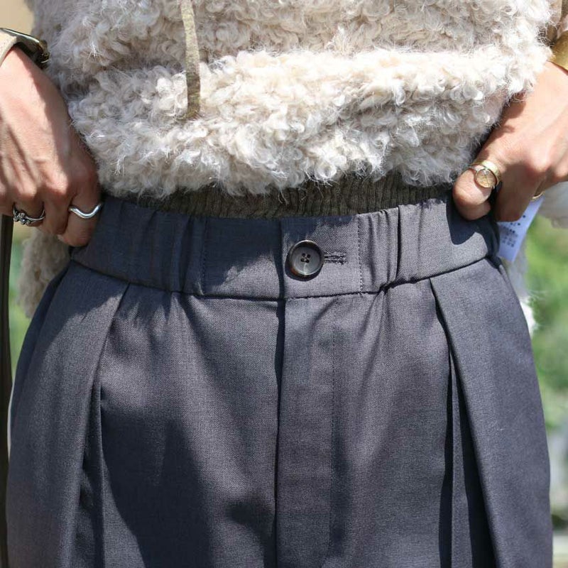 ウエストは一周ぐるりとゴム仕様で、フロントは開きデザインなので、トップスをインしてもきちんと決まります。