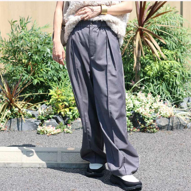 TR素材の上品な質感で、カジュアルからキレイめまで幅広く活躍します。