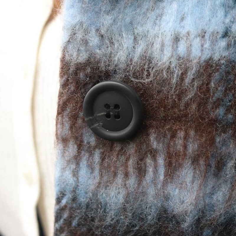 シャギーの柔らかな起毛感が、チェック柄に奥行きとニュアンスをプラス。