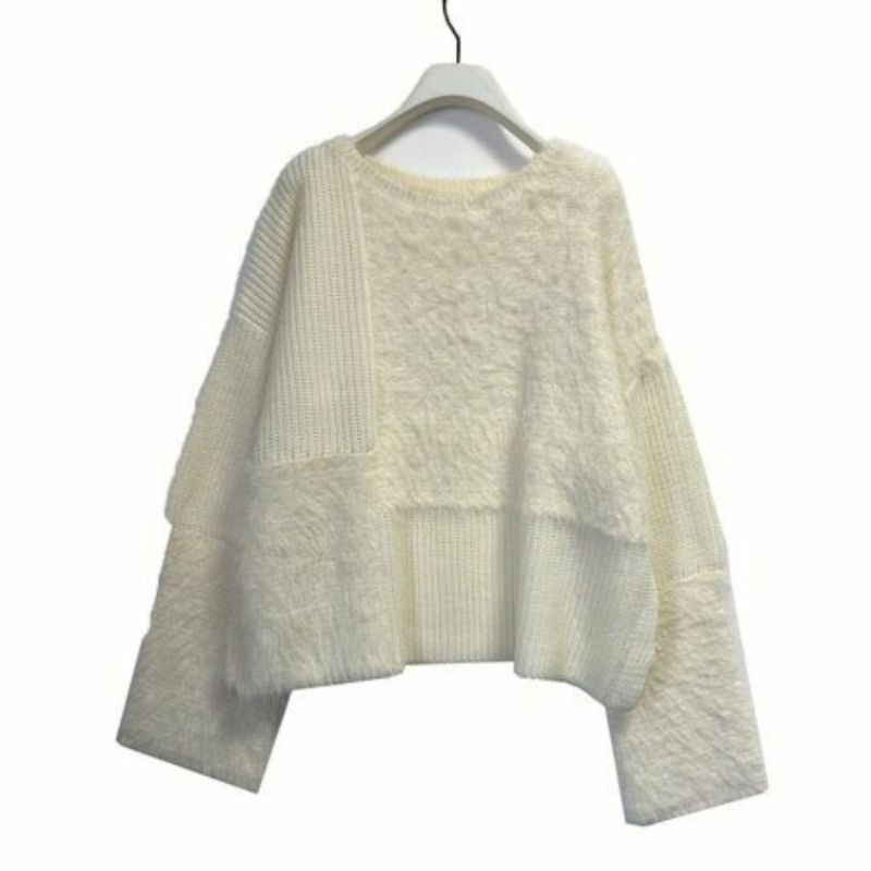 ふんわりとしたシャギーヤーンをMIXすることで、カジュアルさの中に女性らしい華やかさをプラスしました。