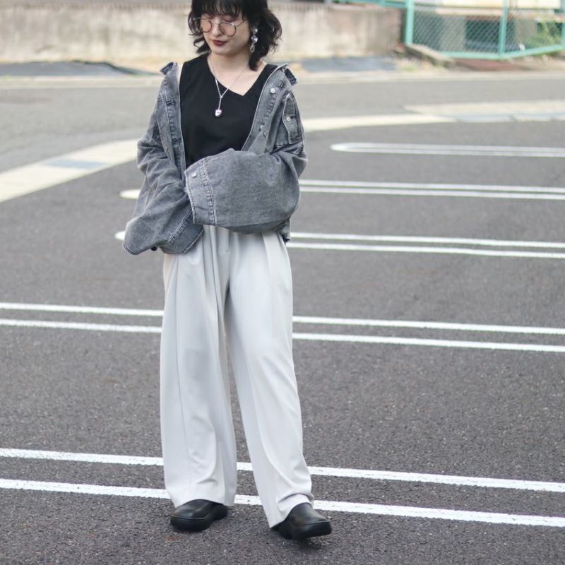 セミワイドのシルエットは、小柄な方にもバランス良く馴染み、すっきりとした印象に。