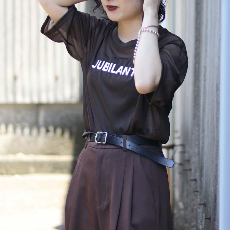ほんのり透け感のあるシアー素材にロゴが施されたトップスで、カジュアルさを程よく抑えつつも、ロゴTの抜け感はしっかりとキープ。