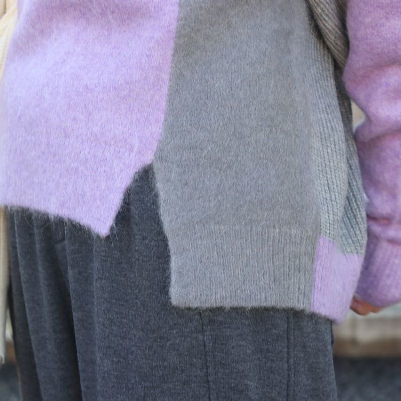 動くたびにドラマチックな表情を見せる、アルパカシャギーのカラーブロッキングニット。