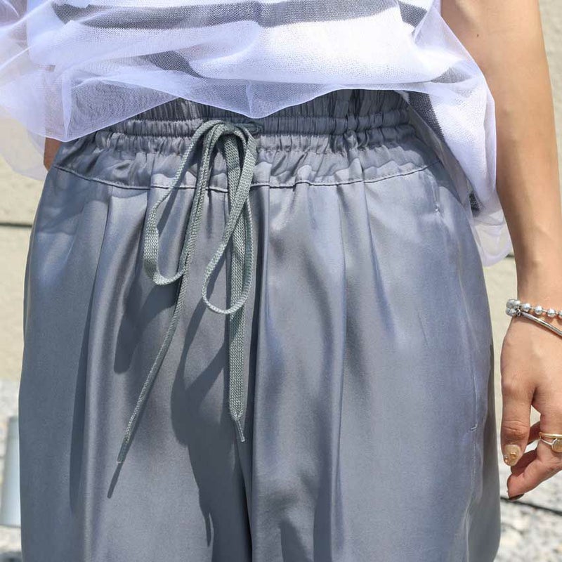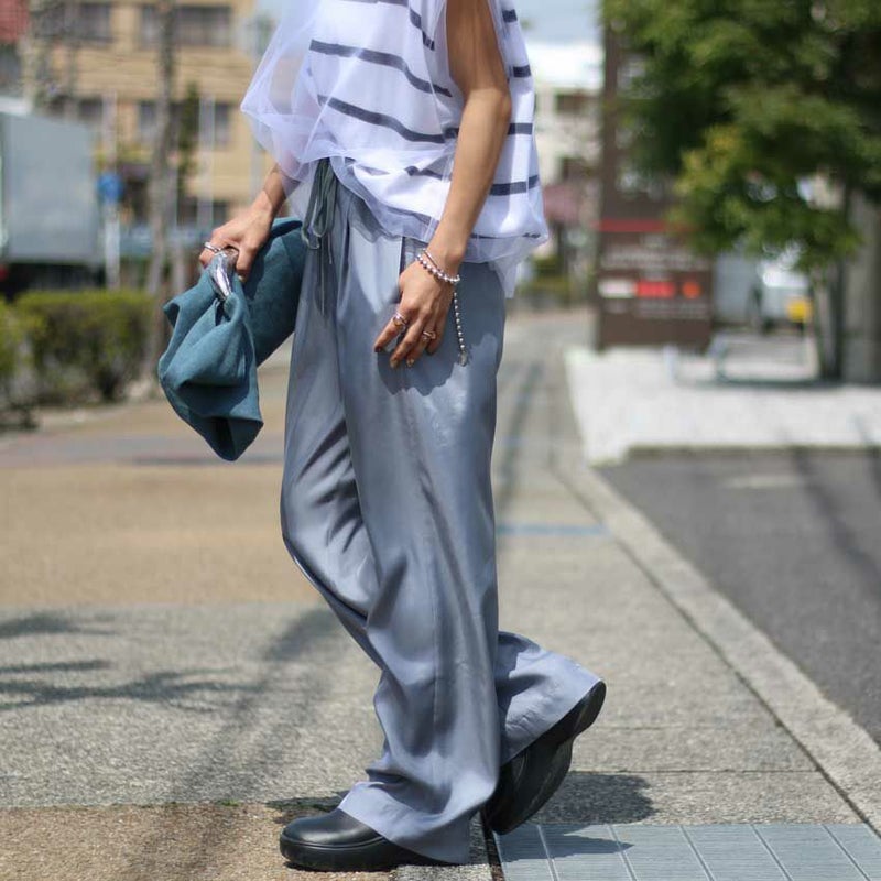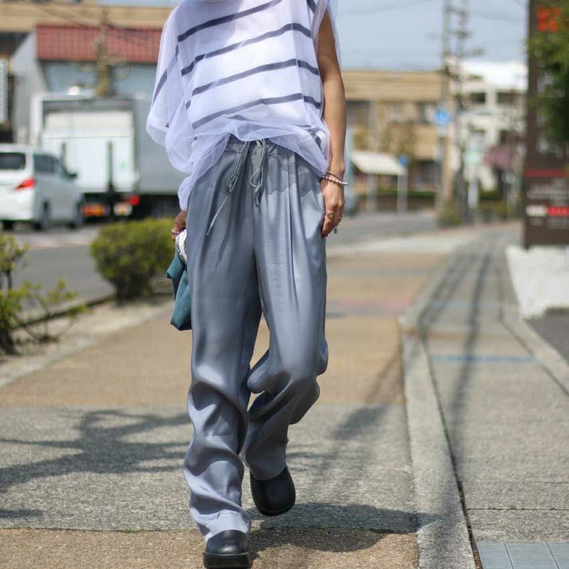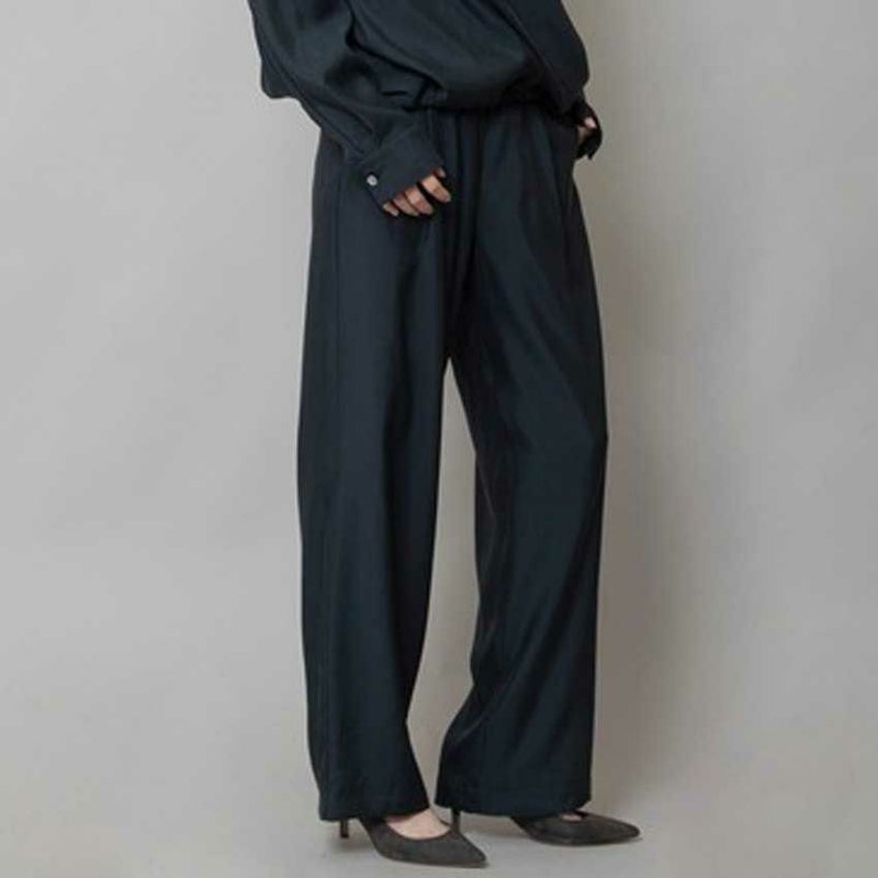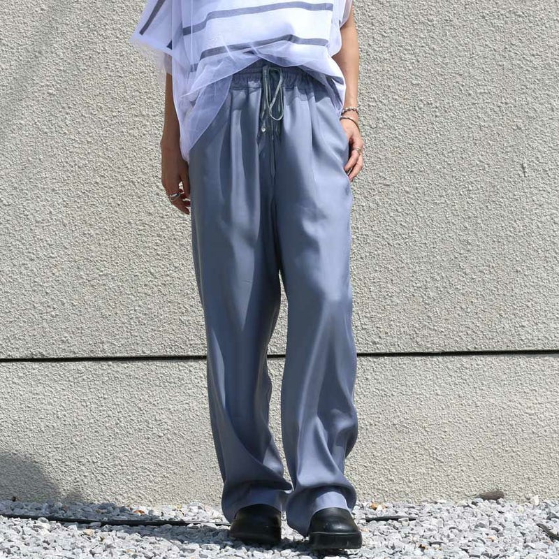 トロミと光沢のあるキュプラツイル素材でキレイ目な印象に仕上げた定番型イージーパンツ