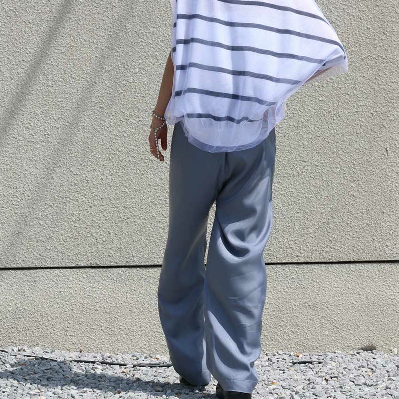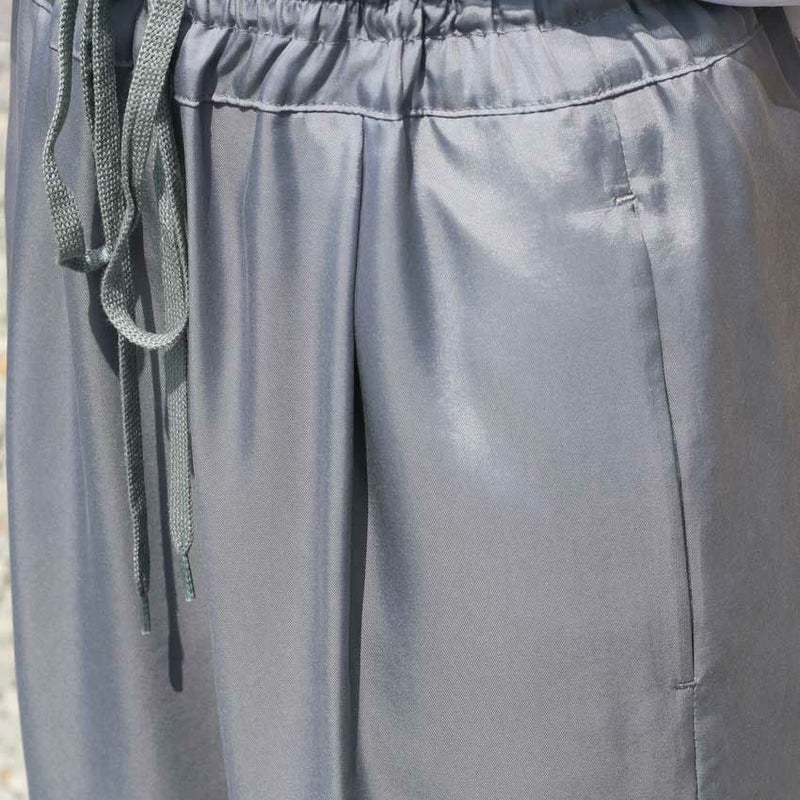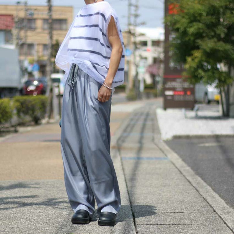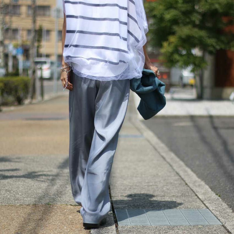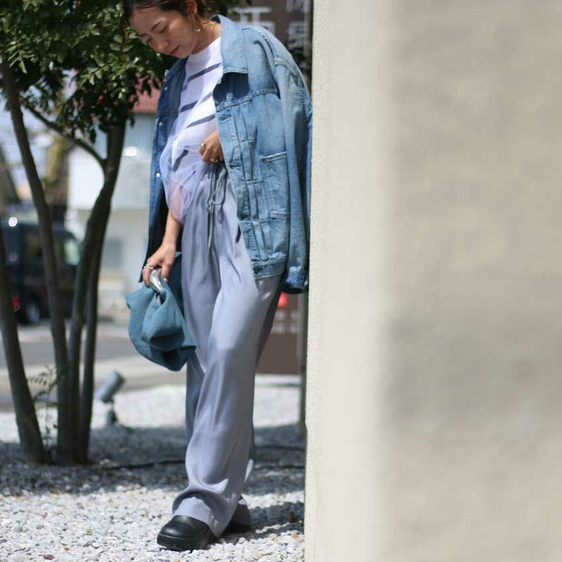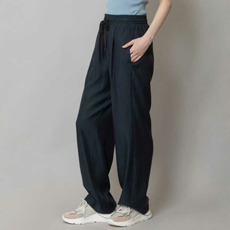 トロミと光沢のあるキュプラツイル素材でキレイ目な印象に仕上げた定番型イージーパンツ