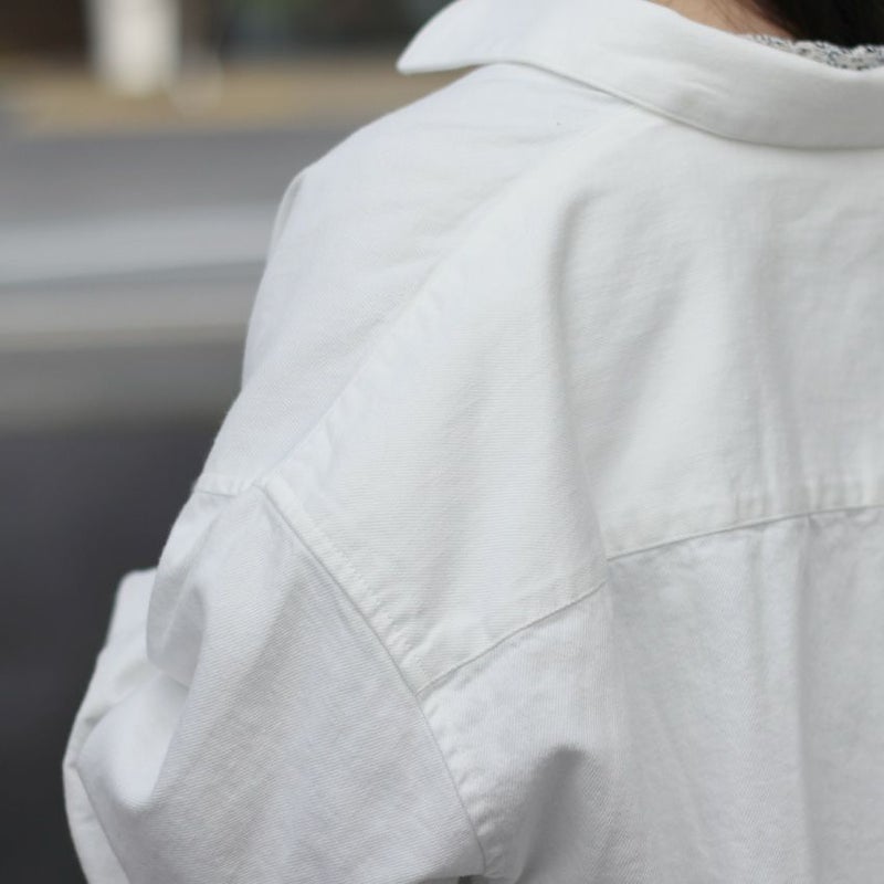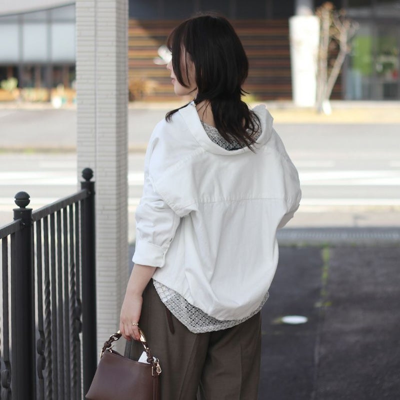 小さめの衿とワイドな袖にすることで全体的に抜け感のある仕上がりに。