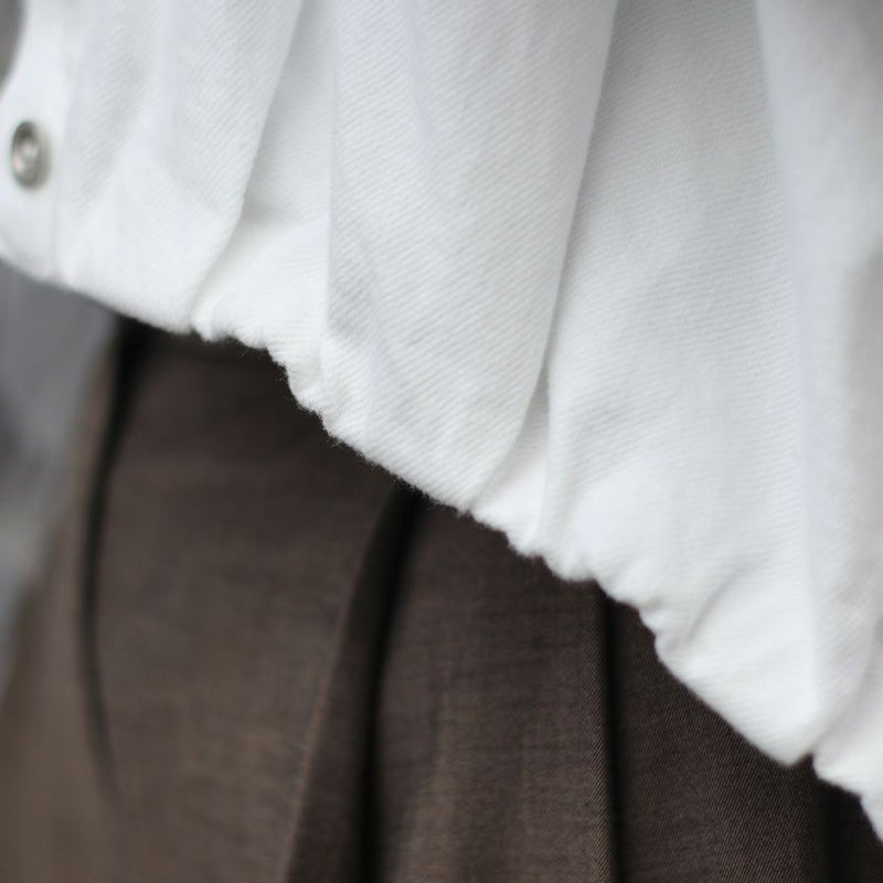 また、内側に織り込まれたゴムギャザーとタックによる裾は立体感を演出してくれます。