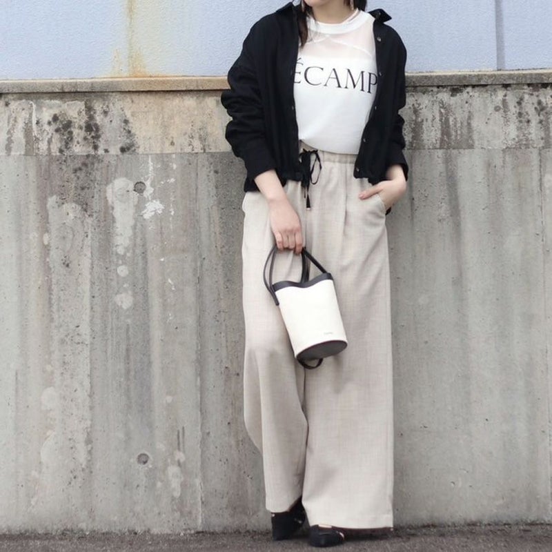 trois/トロワ Reflaxキャンバス ワイドパンツ ベージュ