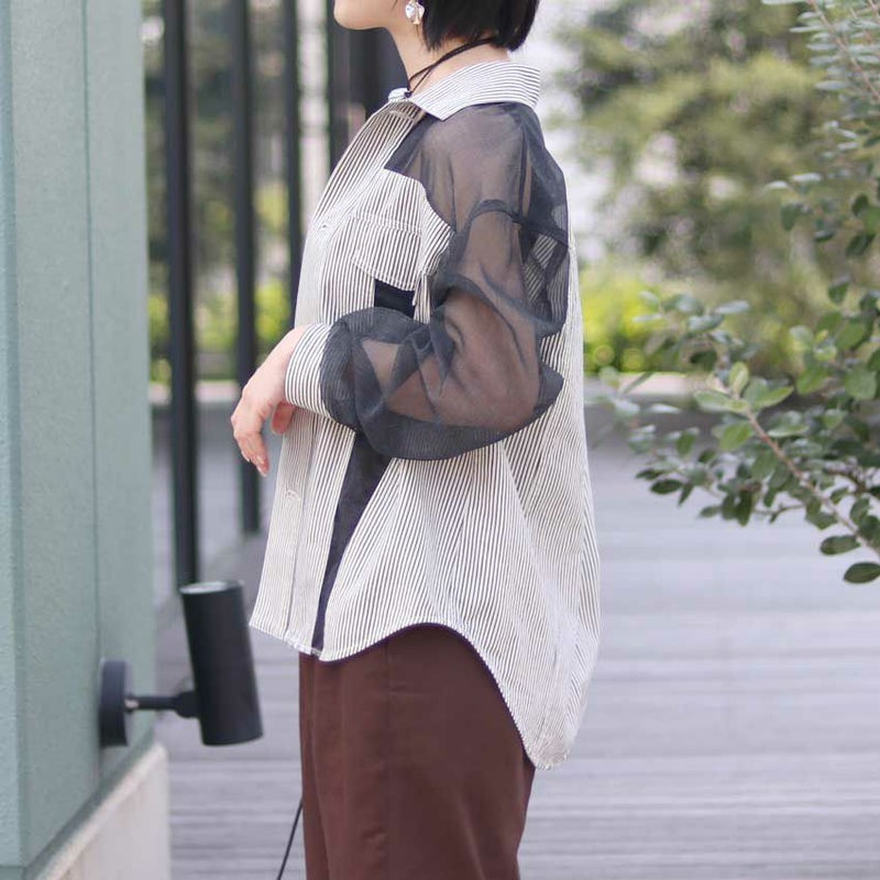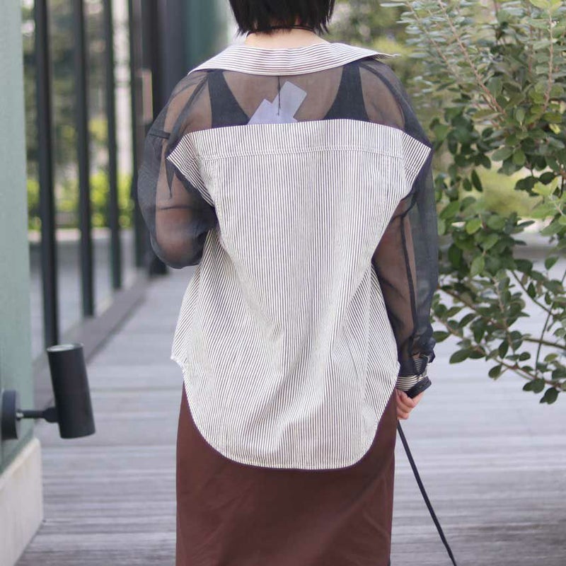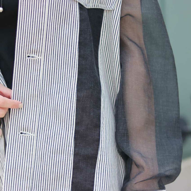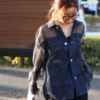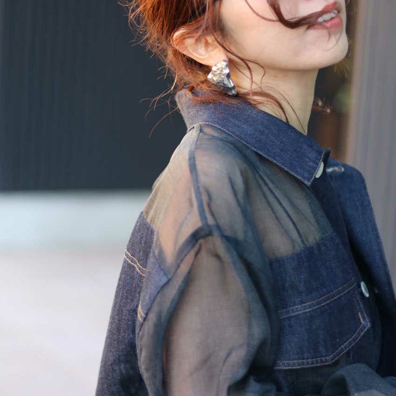 シアー切り替えデザインがレディライクなデニムシャツ