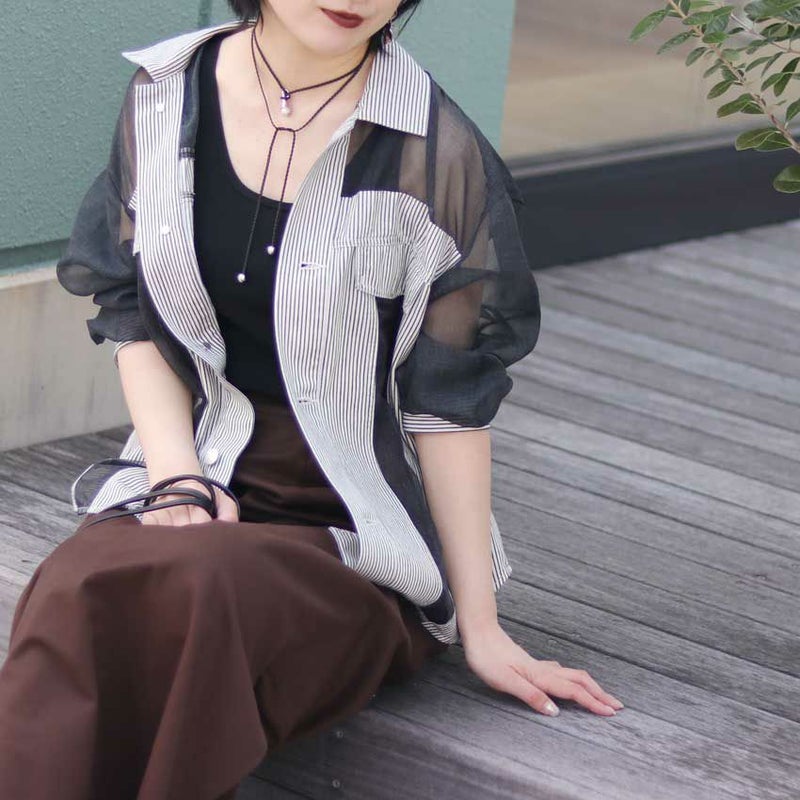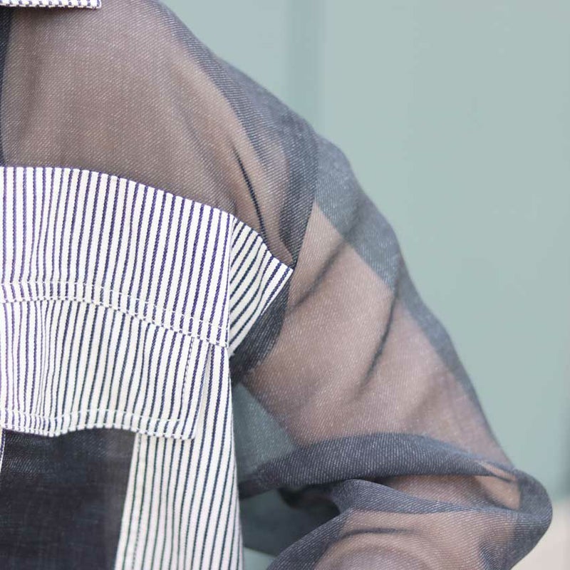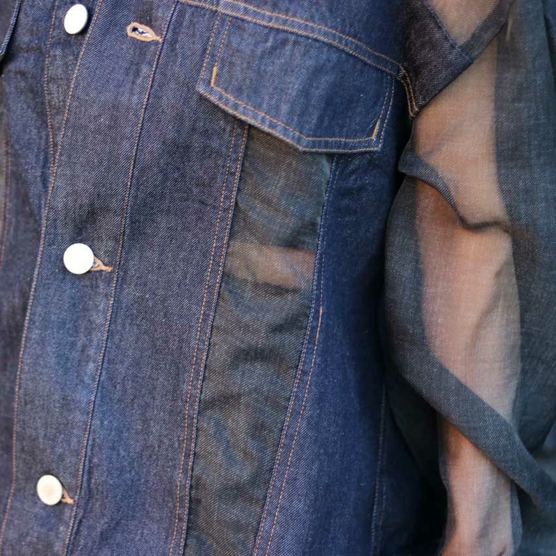 ブラックシアー素材にもデニムプリントを施されており、上品な透け感です。