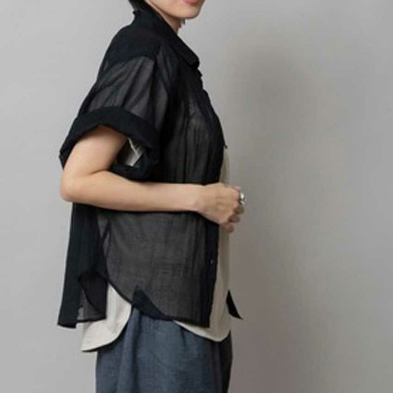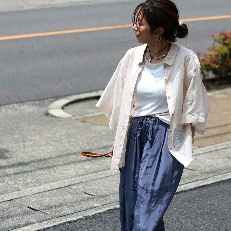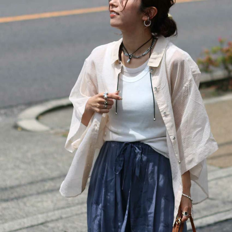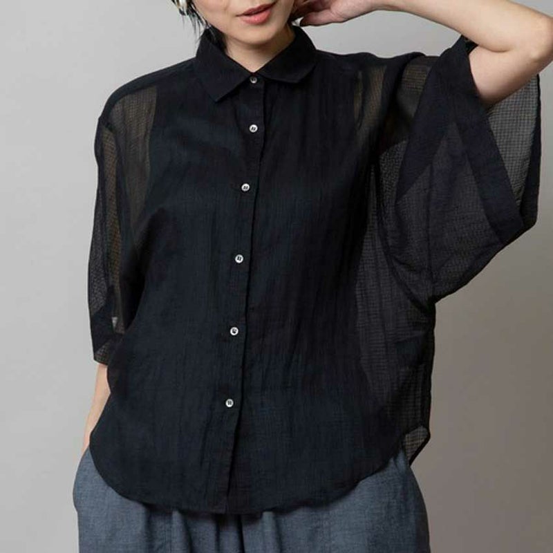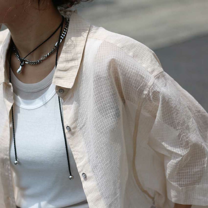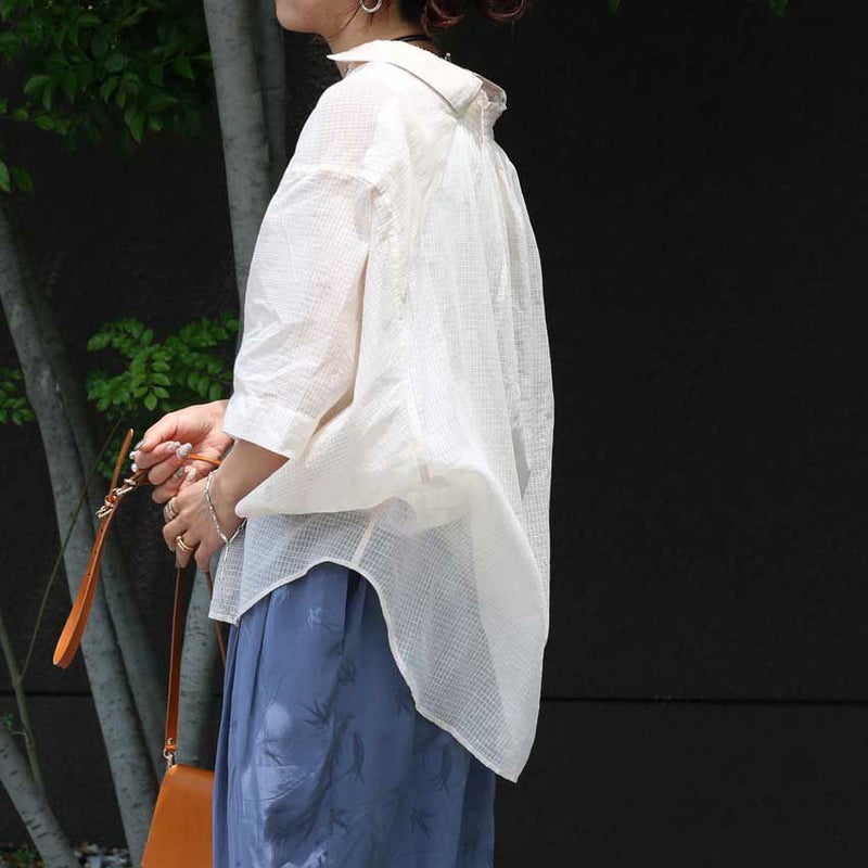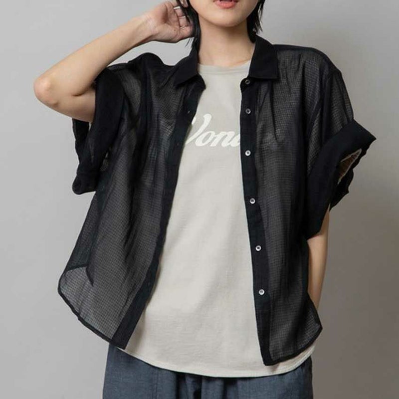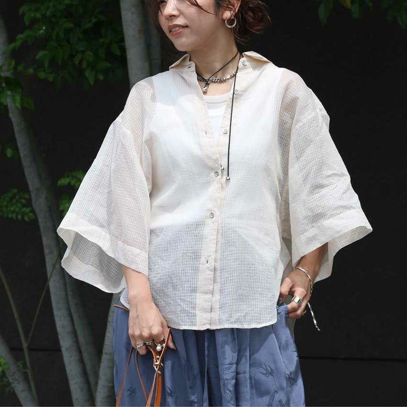 絶妙なシアー感とシャドーチェックのニュアンスがお洒落なシアーシャツ。