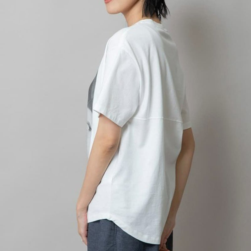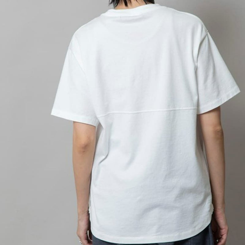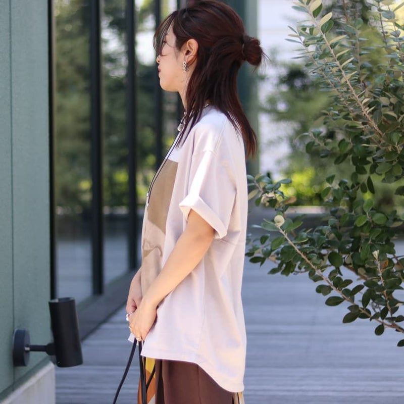 Tシャツ自体はシンプルに。ゆるやかに丸みを持たせた裾と、後ろの切り替え&ステッチでちょっとだけデザインをプラス。