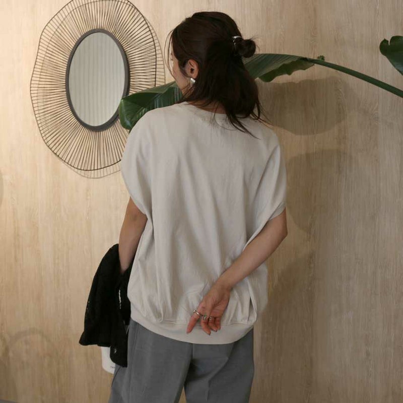 程よく腕が隠れる裄丈の大人フレンチスリーブTシャツ。