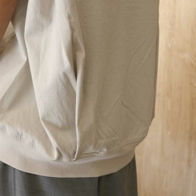 後ろ裾に丸みがあるので腰回りがカバーでき、夏の暑い時期に1枚で着るのに丁度良いアイテム。