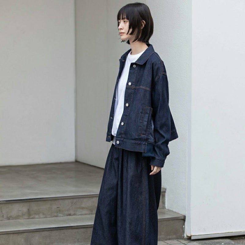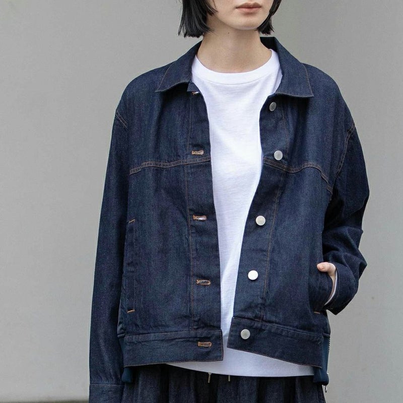 季節の変わり目に一枚あると便利な、抜け感のあるデニムトラッカージャケット。