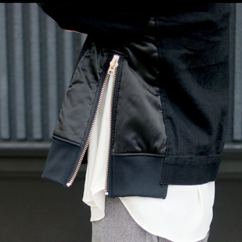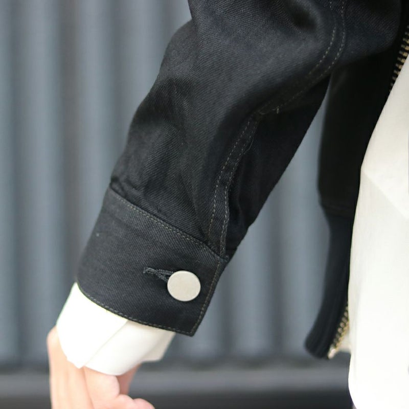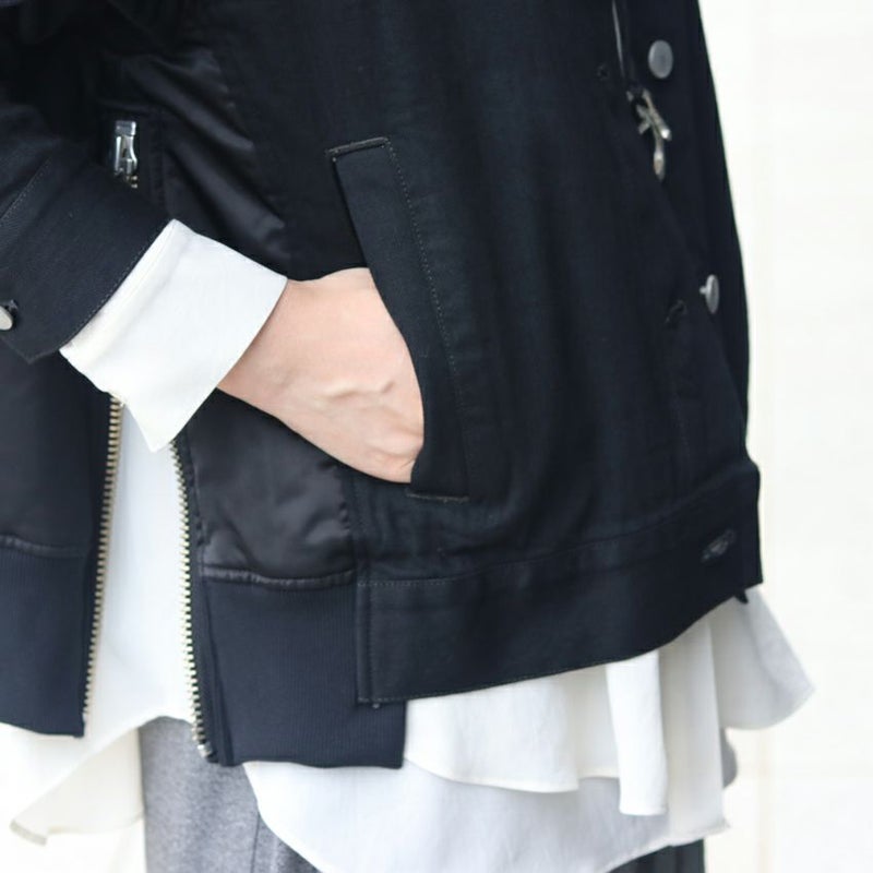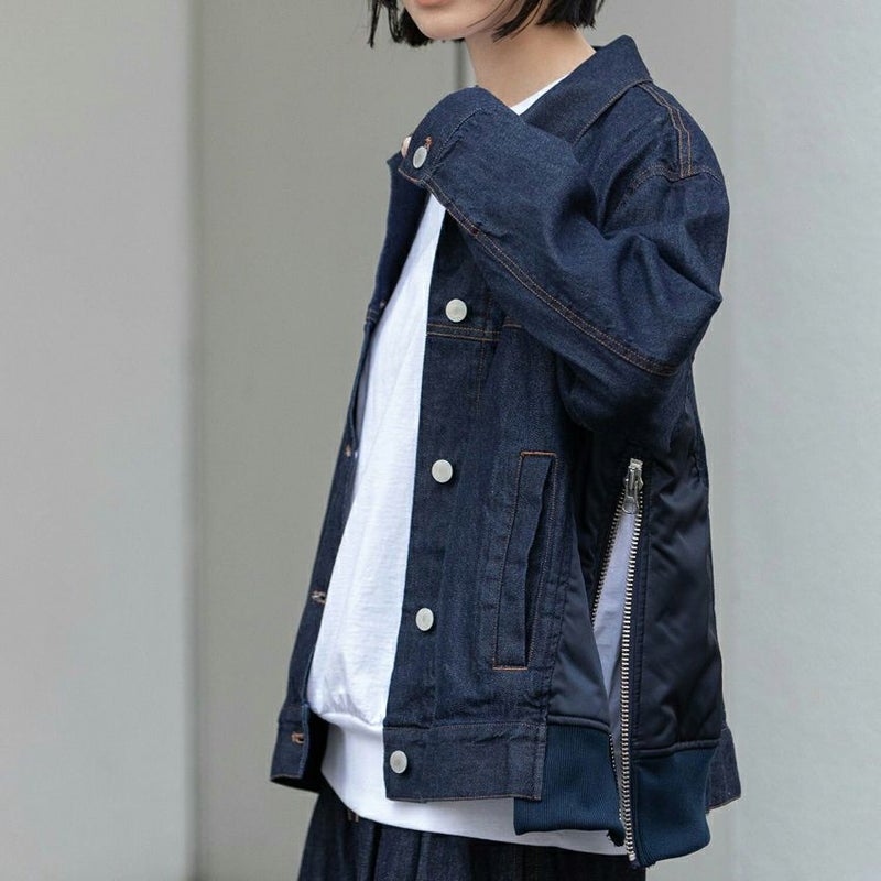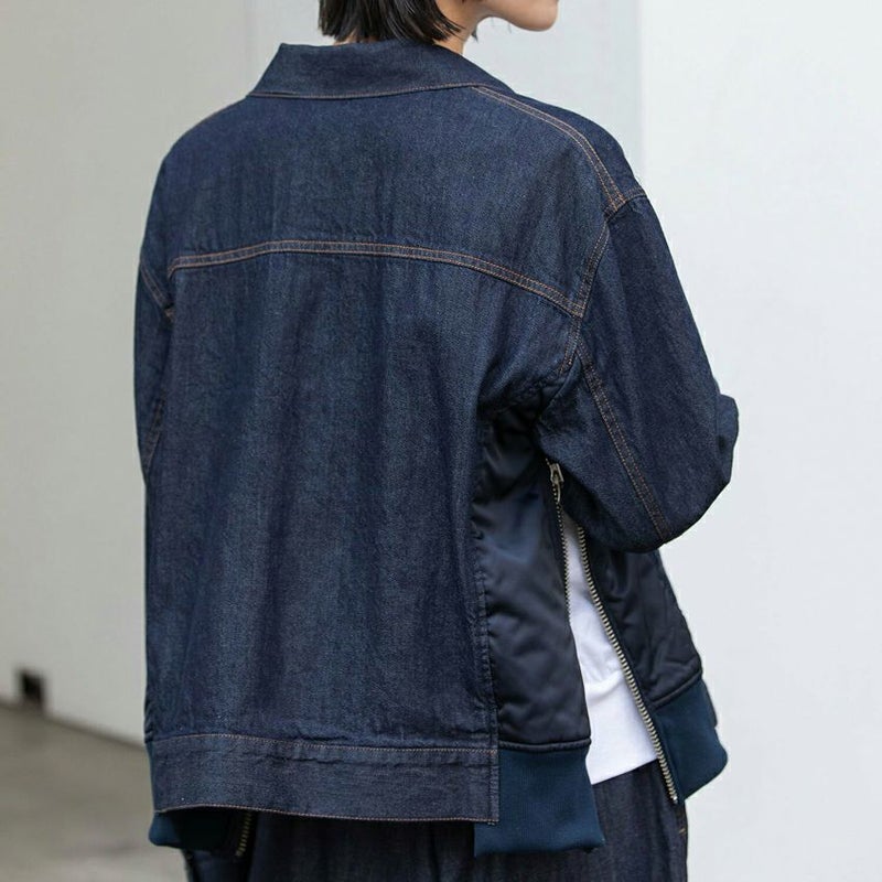 ベーシックなデニムトラッカーの脇身頃をフライトジャケットで切り替えた、遊び心あるドッキングブルゾンです。