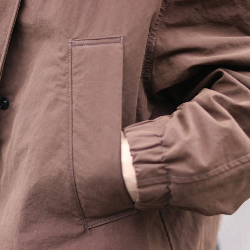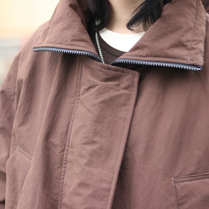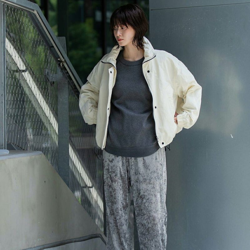スタンドカラーや身頃裾のストレッチコードでブラウジングも可能なので、シルエットの微調整も自由自在。