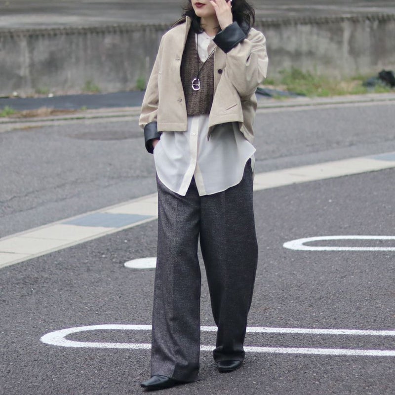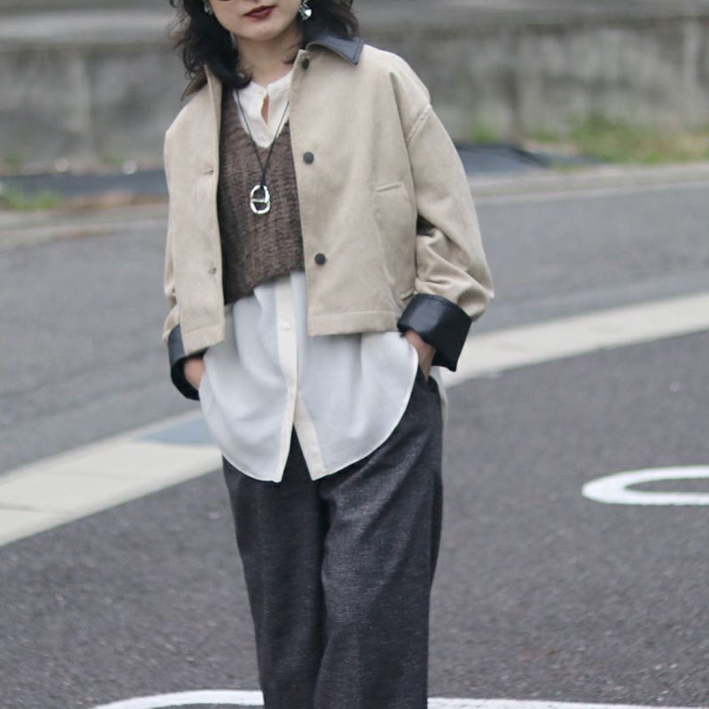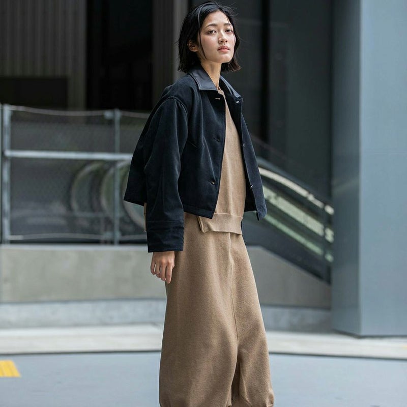 ショートレングスのステンカラーデザインは、すっきりとしたシルエットでバランスが取りやすく、ボリュームのあるパンツやタートルネックとの相性も抜群。