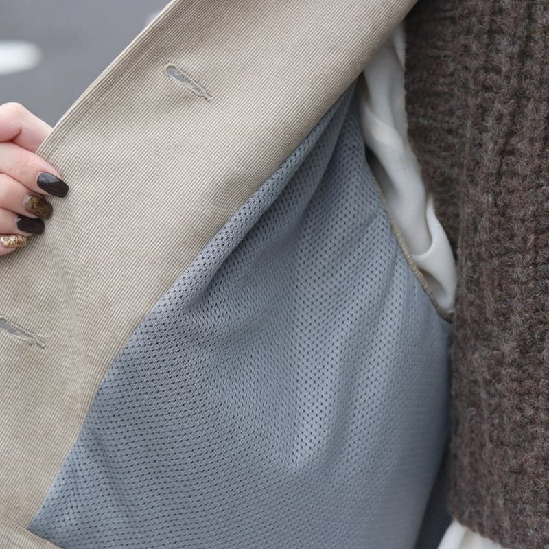 テクニカル素材を用いることで、ワークテイストを抑えつつも軽やかに羽織れるコーデュロイカバーオール。