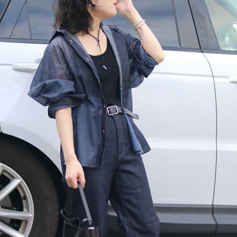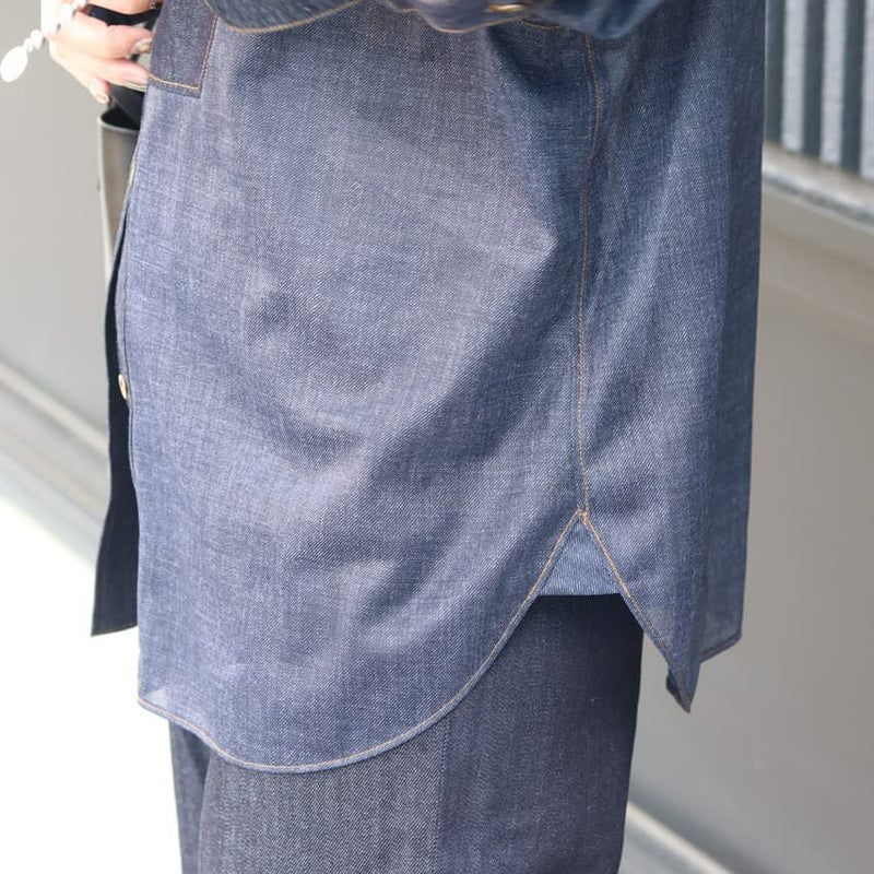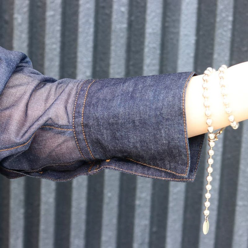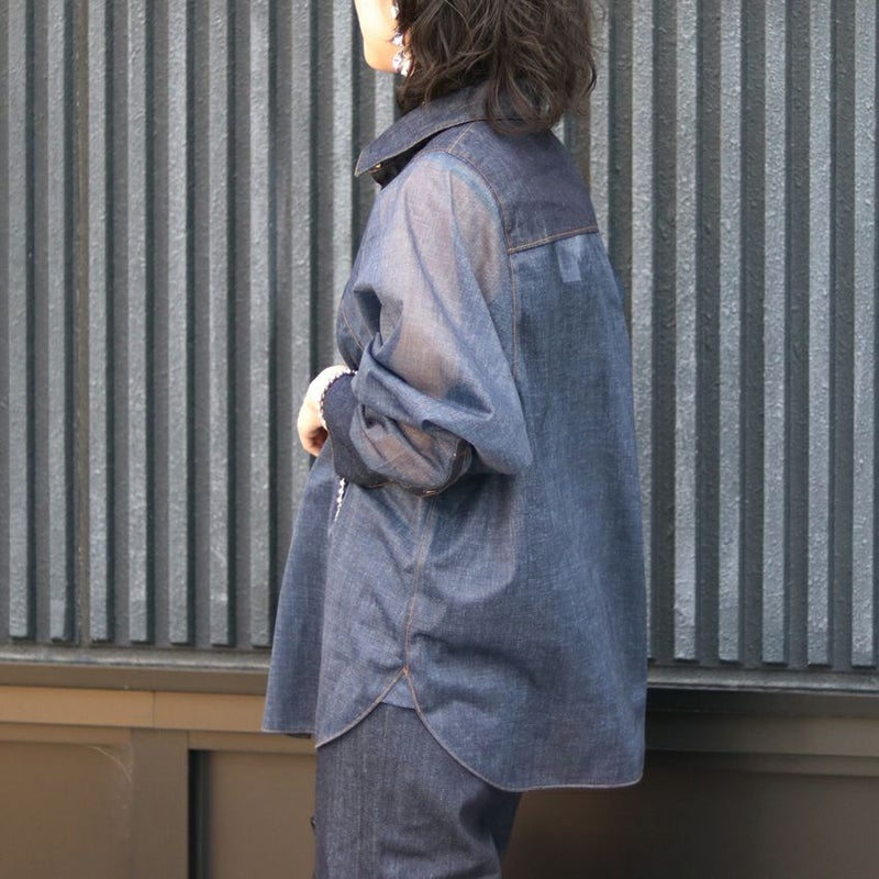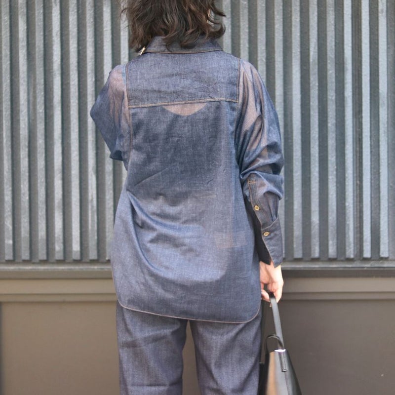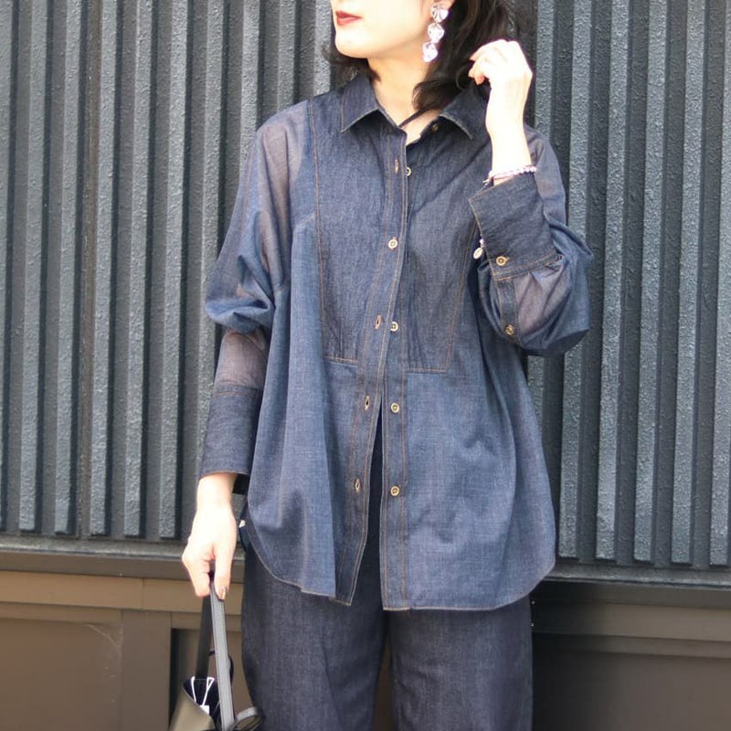一方で、身頃やふんわりとしたボリューム袖には、軽やかなシアーデニムを使うことで、ブラウスのような上品な表情をプラスしました。