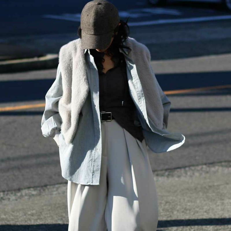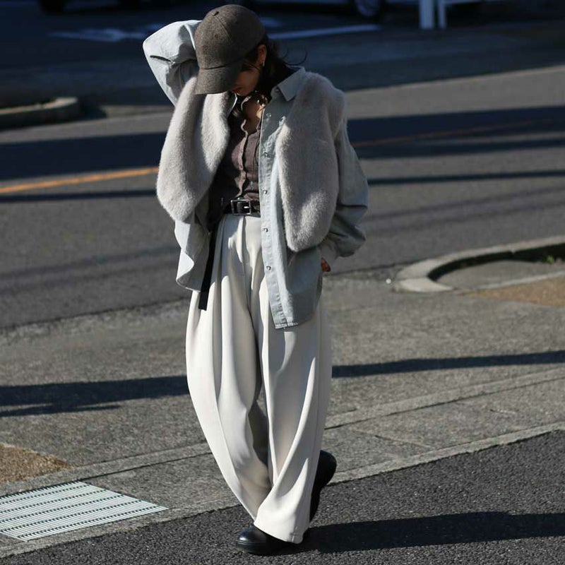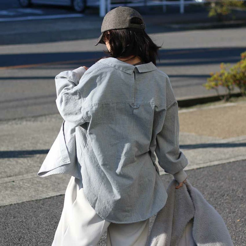 身体のラインを拾わないリラックスシルエットで、 羽織るだけでこなれた印象が完成します。