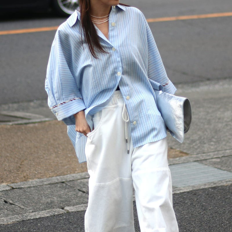 きれいめにも抜け感スタイルにも馴染む、まさに万能シャツ。
