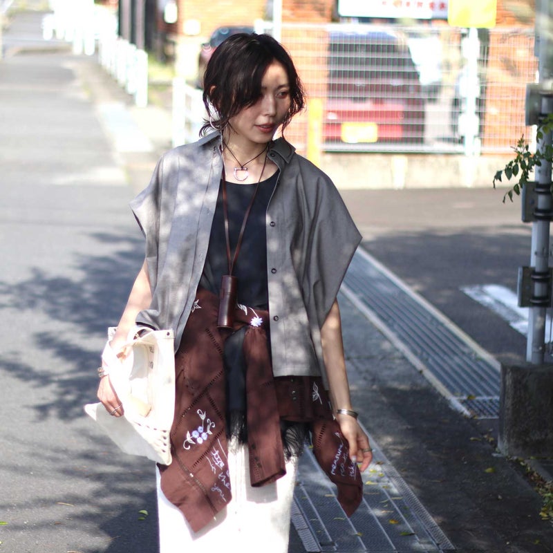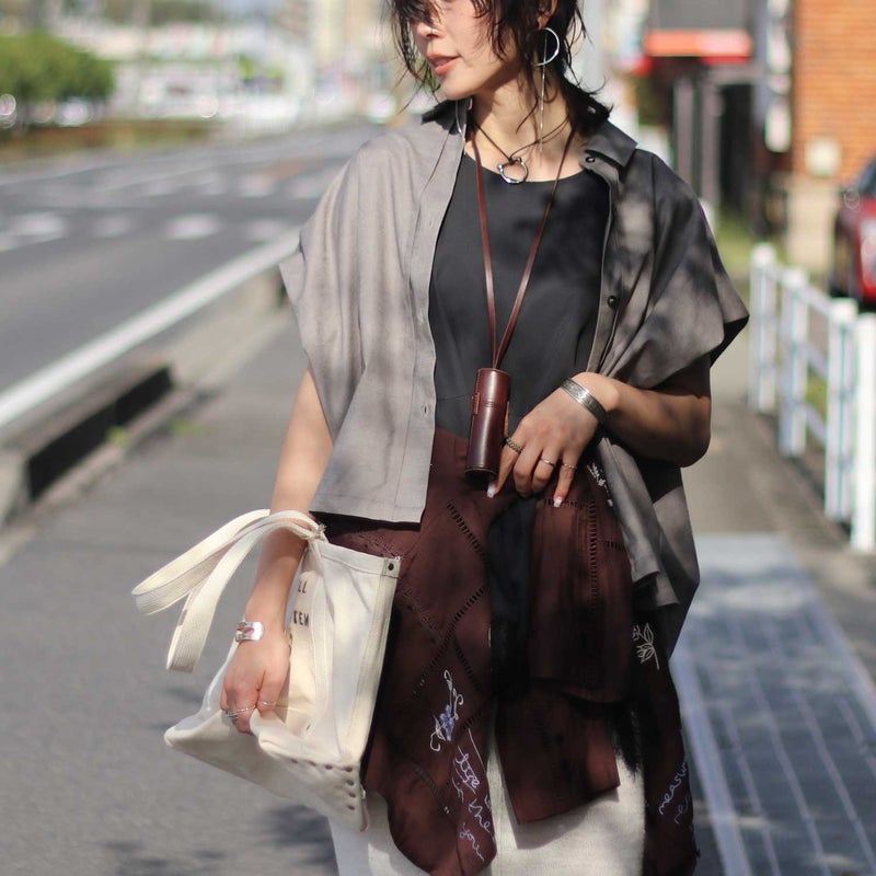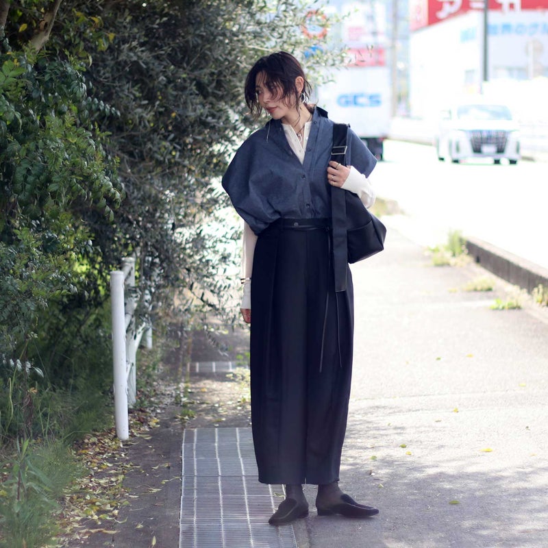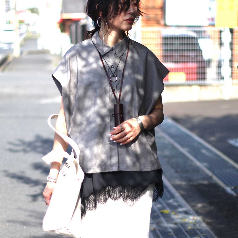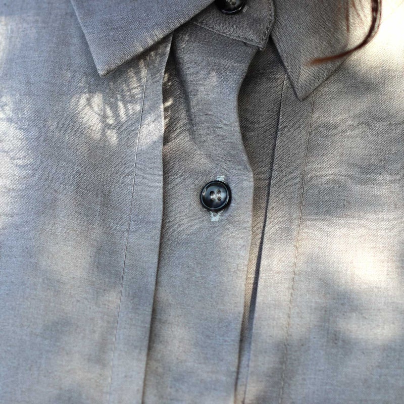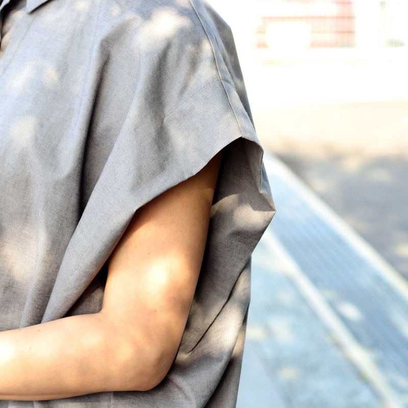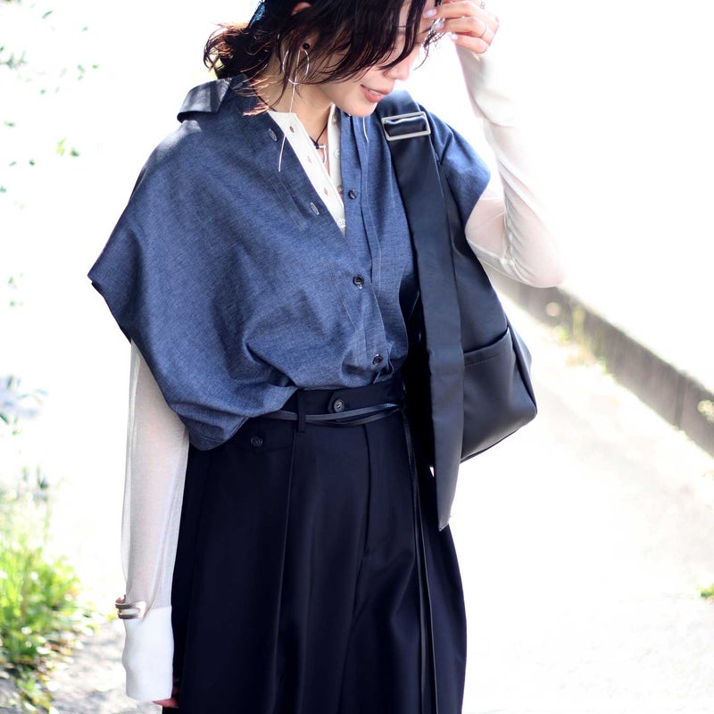 羽織としても使いやすいヘンプシャンブレーのタックスリーブシャツ
