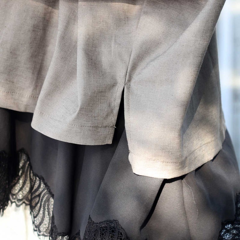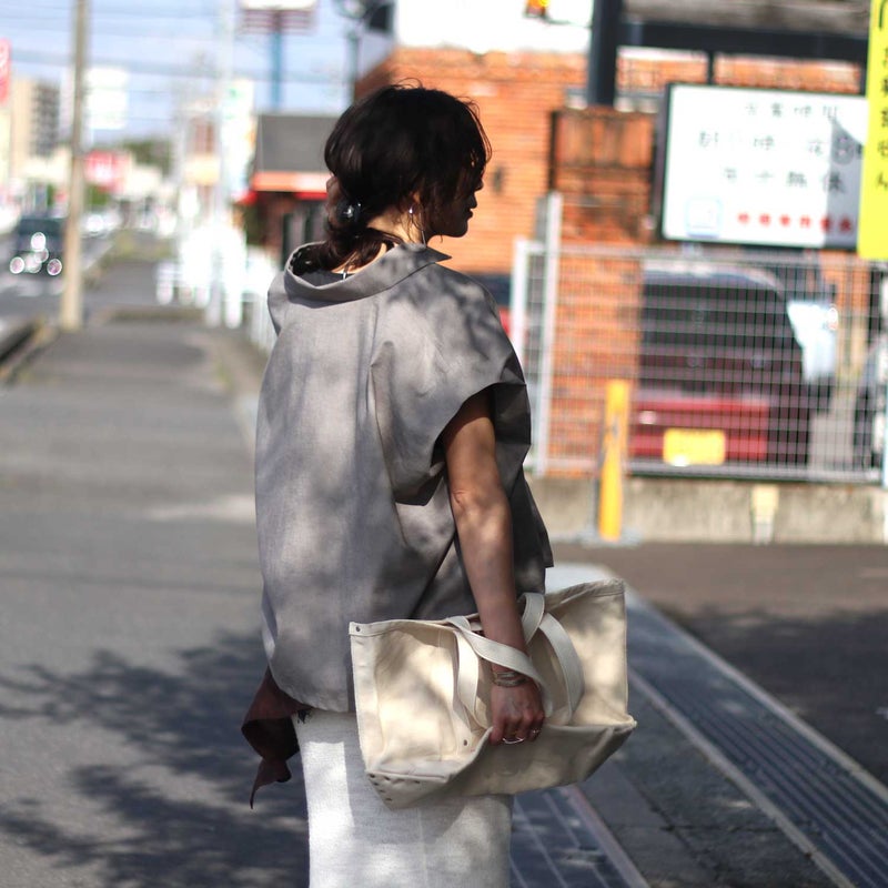 肩に大きくタックを入れたタックスリーブが特徴で、脇側にマチを持たせることで立体的でボリュームのあるサイドシルエットを形成します。