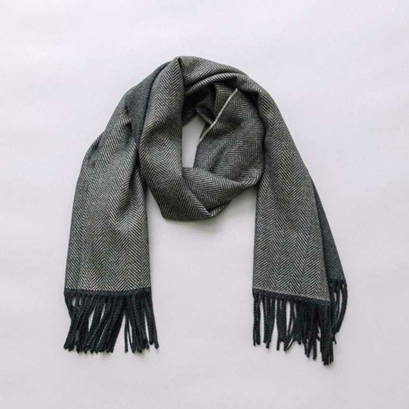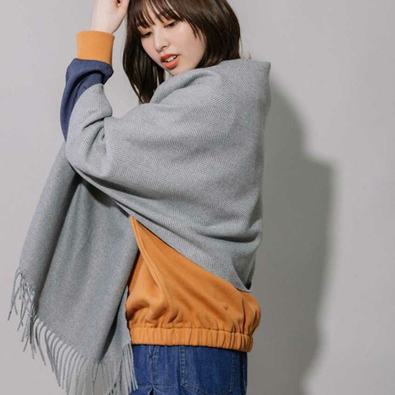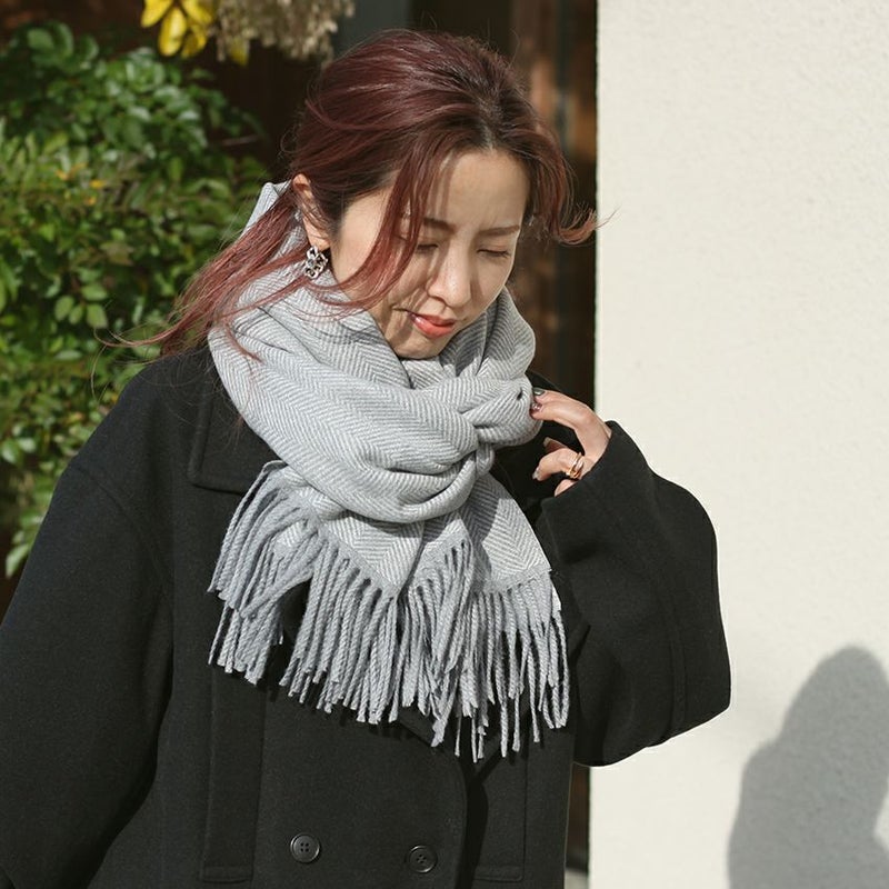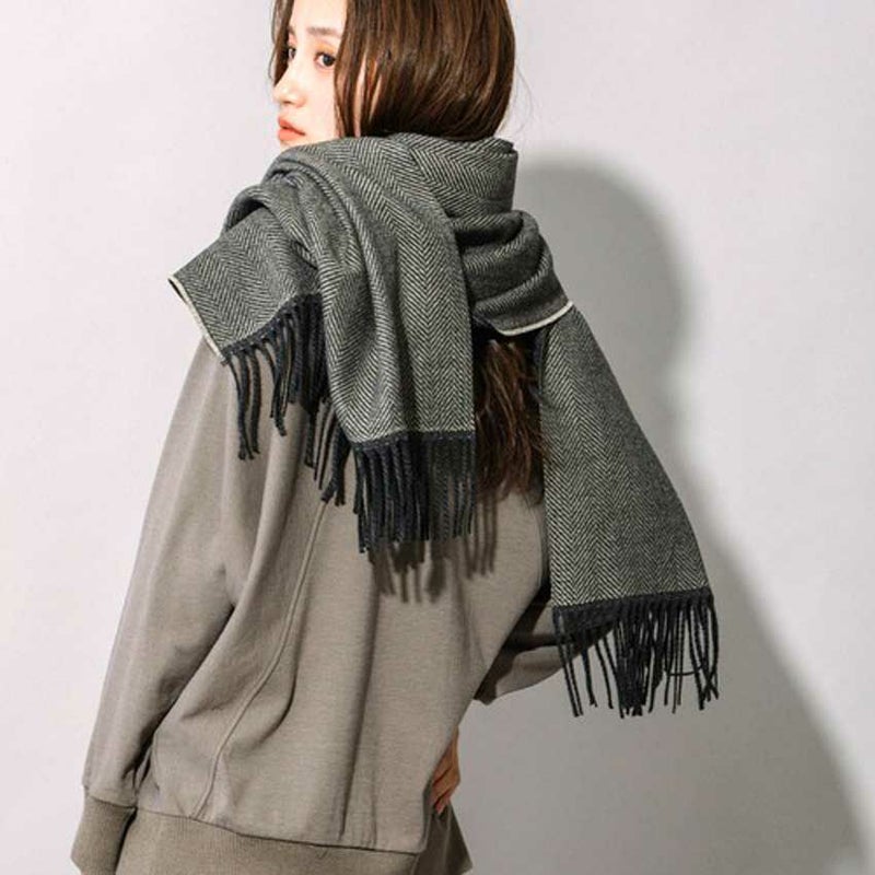 トラディショナルなヘリンボーン柄が今年らしいストール。