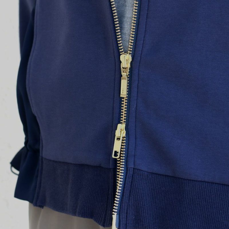 カジュアルになりがちなブルゾンを、バックプリーツと異素材使いでアップデートしたこなれ感ある1枚です。