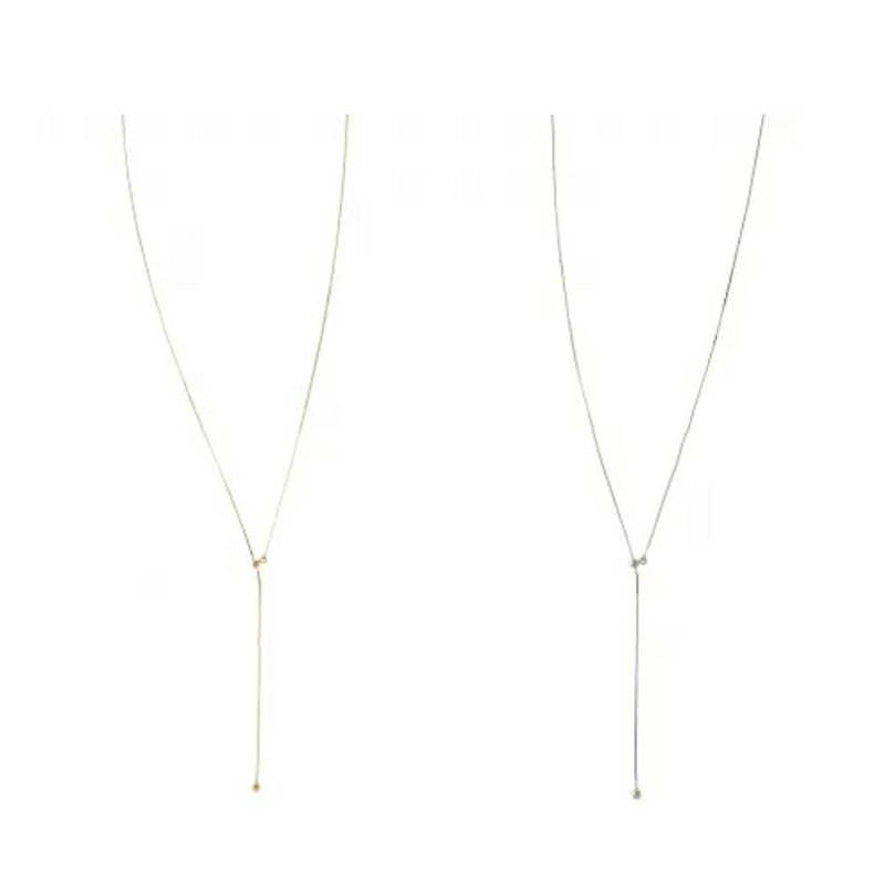 首元をすっきり見せてくれる、華奢で長めのネックレス。