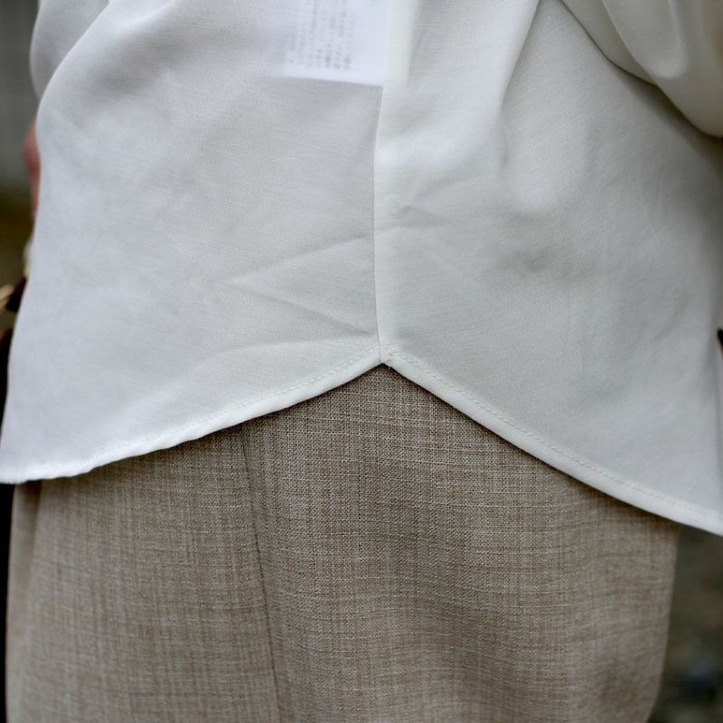 インスタイルしてももたつかない生地感なのでパンツ、スカートどのアイテムにも合わせやすいです。 透け感なく体のラインを拾いにくく、スマートに着用いただけます。