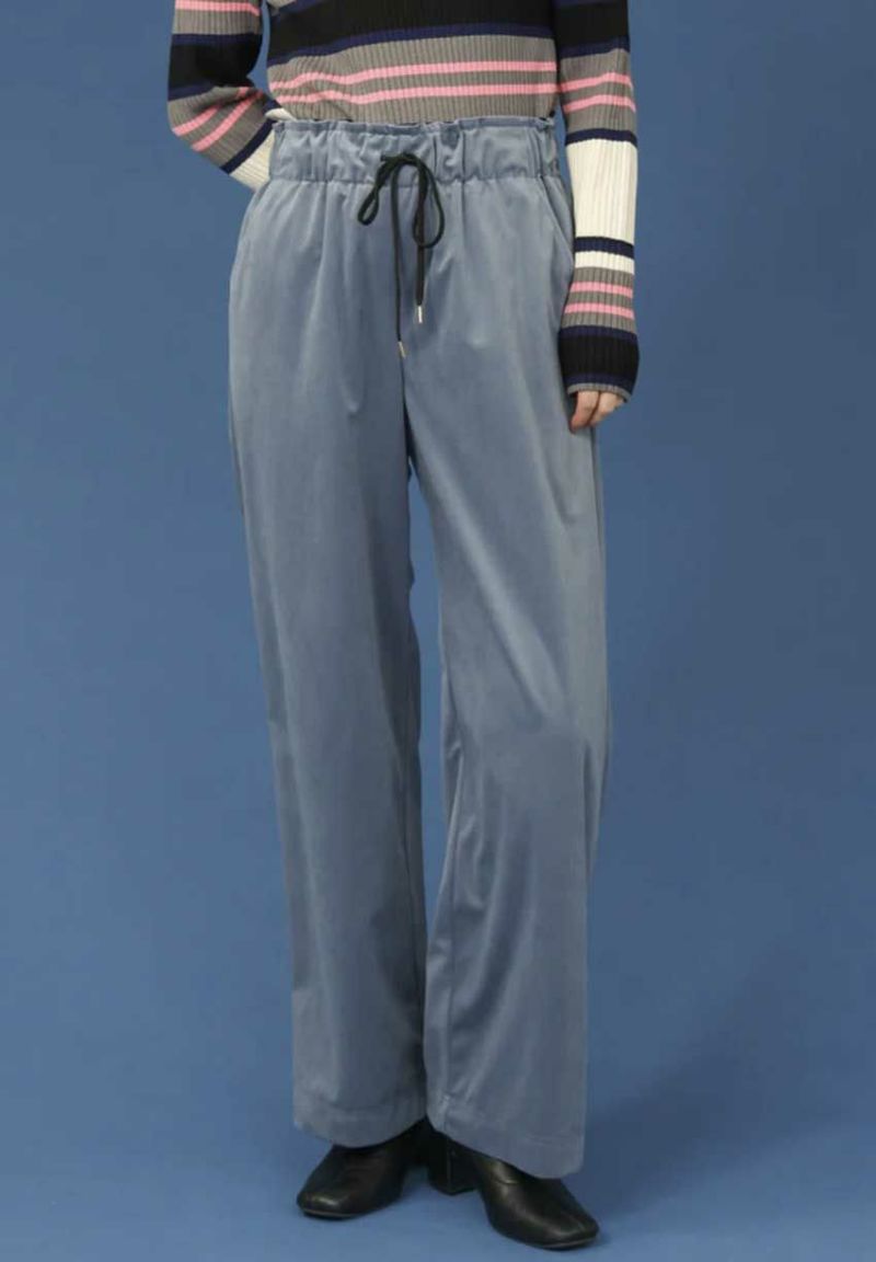 しなやかなドレープと上品な光沢感が魅力のベロアツイル素材を使用したセミワイドパンツ。