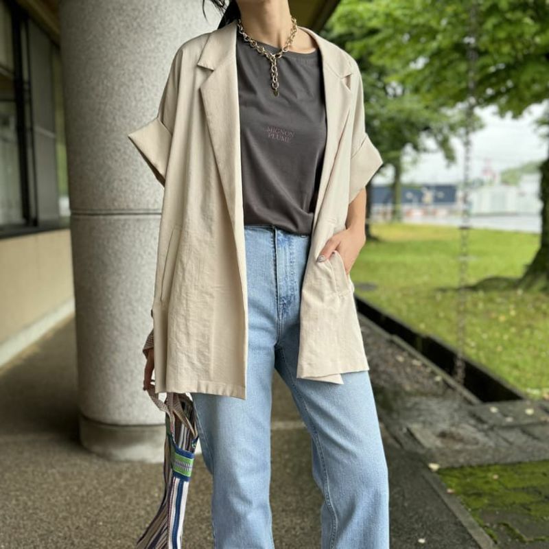 テーラード襟できれいめ感がある中に、ゆるっとしたサイズ感で程よいラフさがあるため、こなれ感のある大人スタイルを簡単に作ることが出来ます。