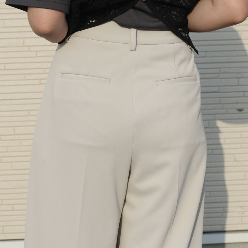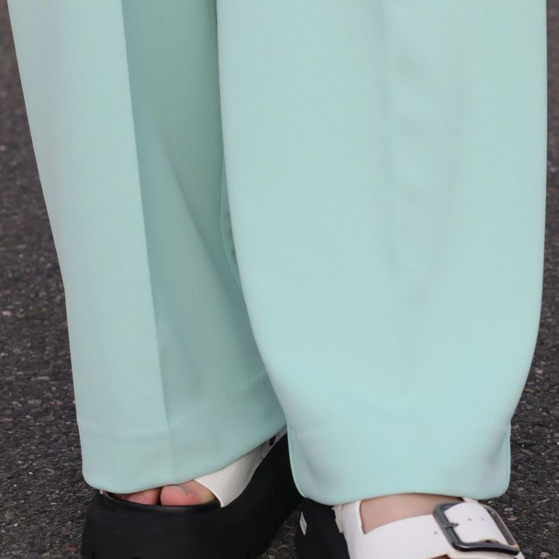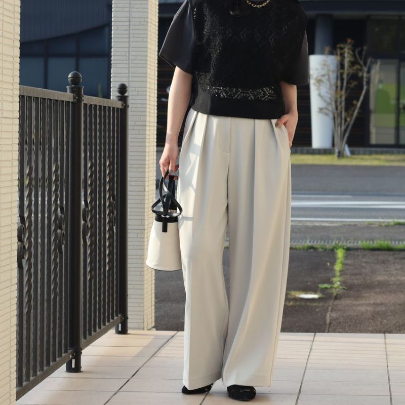 また、セミワイドパンツなので小柄な女性でも綺麗に合わせていただけます。