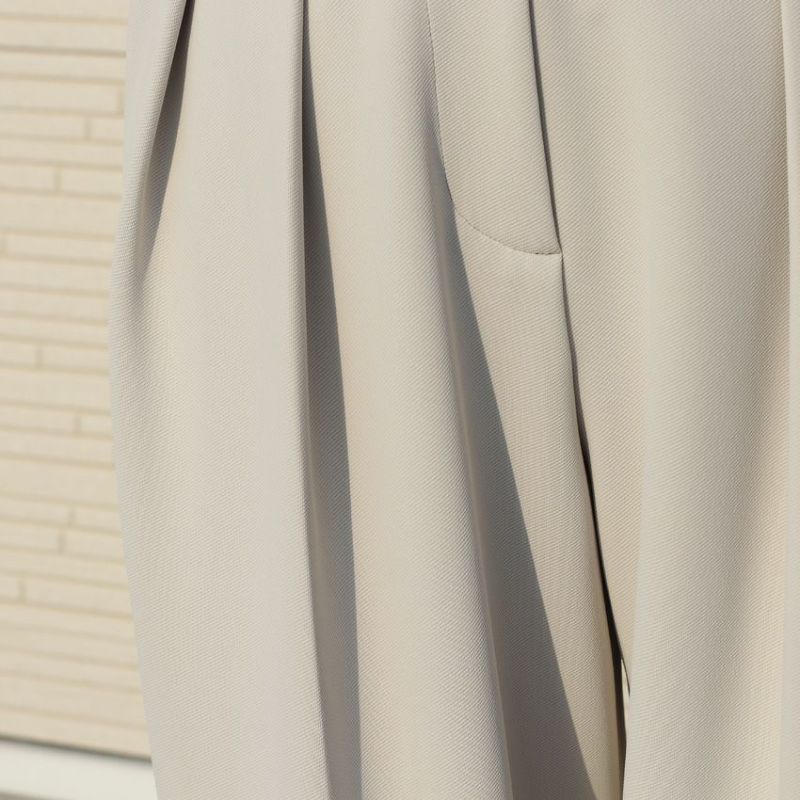 ツイルの生地がしなやかなドレープ感を演出するツータックパンツ。
