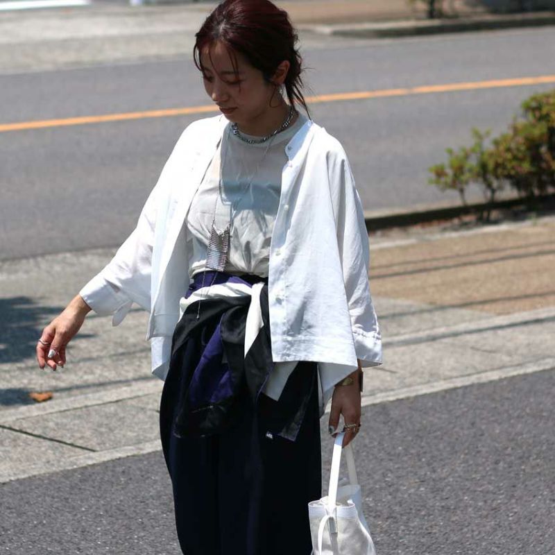 Tシャツの上から羽織るだけで、シンプルなのに洗練された夏コーデに。