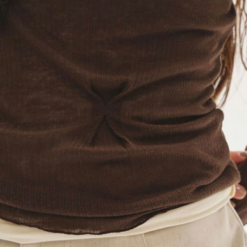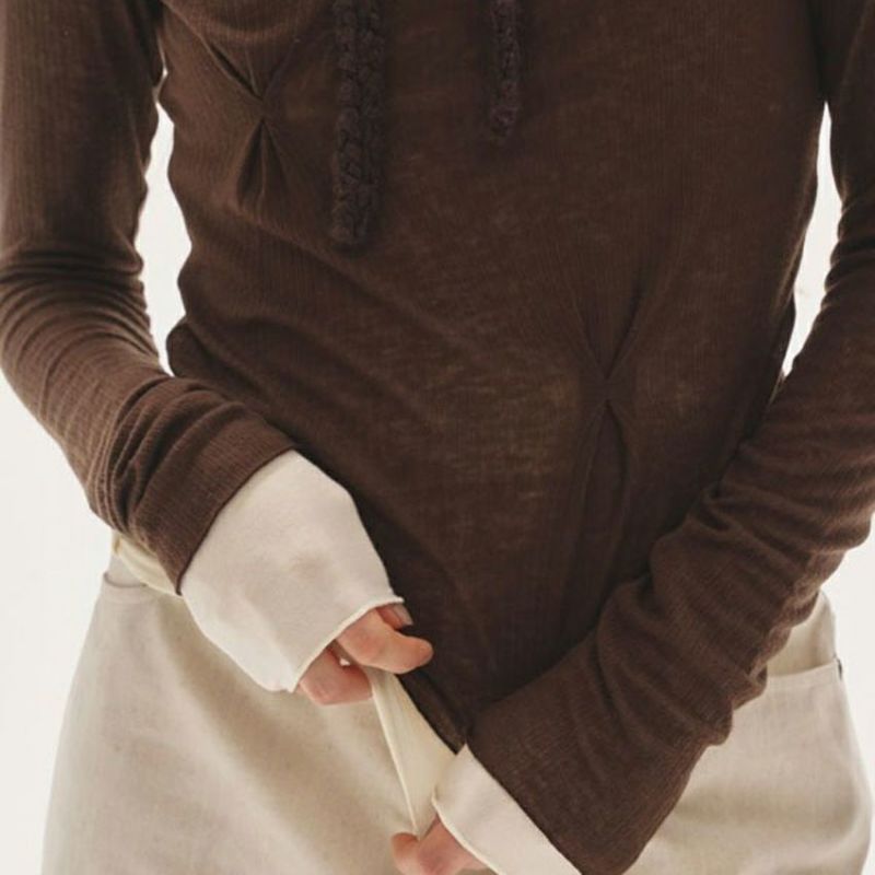 柔らかな天竺生地に、ほのかな透け感をもつリブ生地を重ねたレイヤードデザインが魅力です。