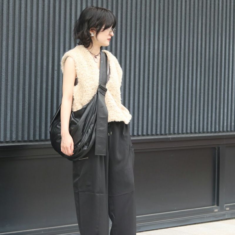 マチ付きでA4サイズも収容可能なサイズ感と、太めのショルダーとのバランスが絶妙なアイテム。